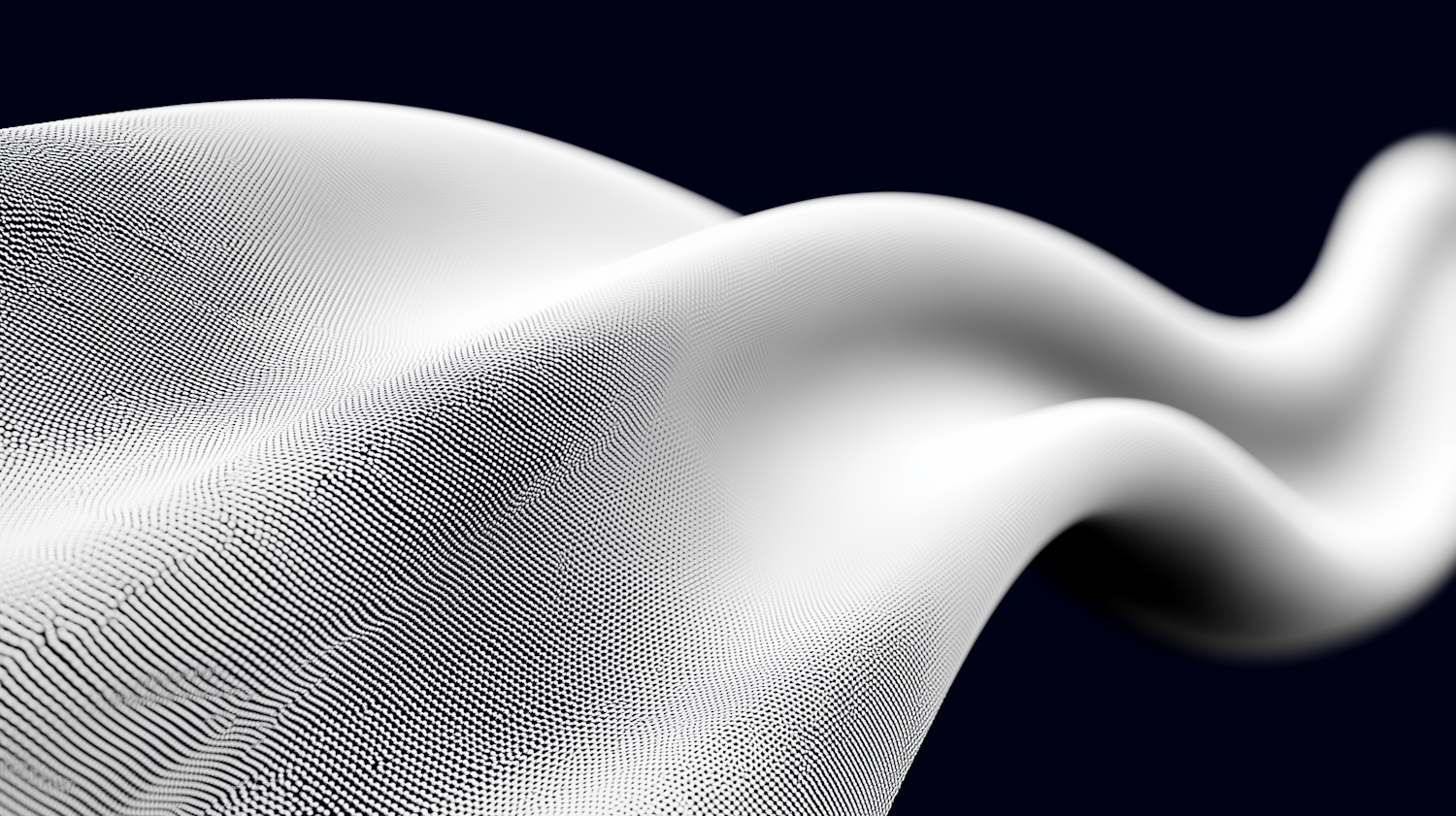 Abstract wave-like structure with fine dotted patterns on a white surface against a black background, creating a dynamic, minimalistic design.