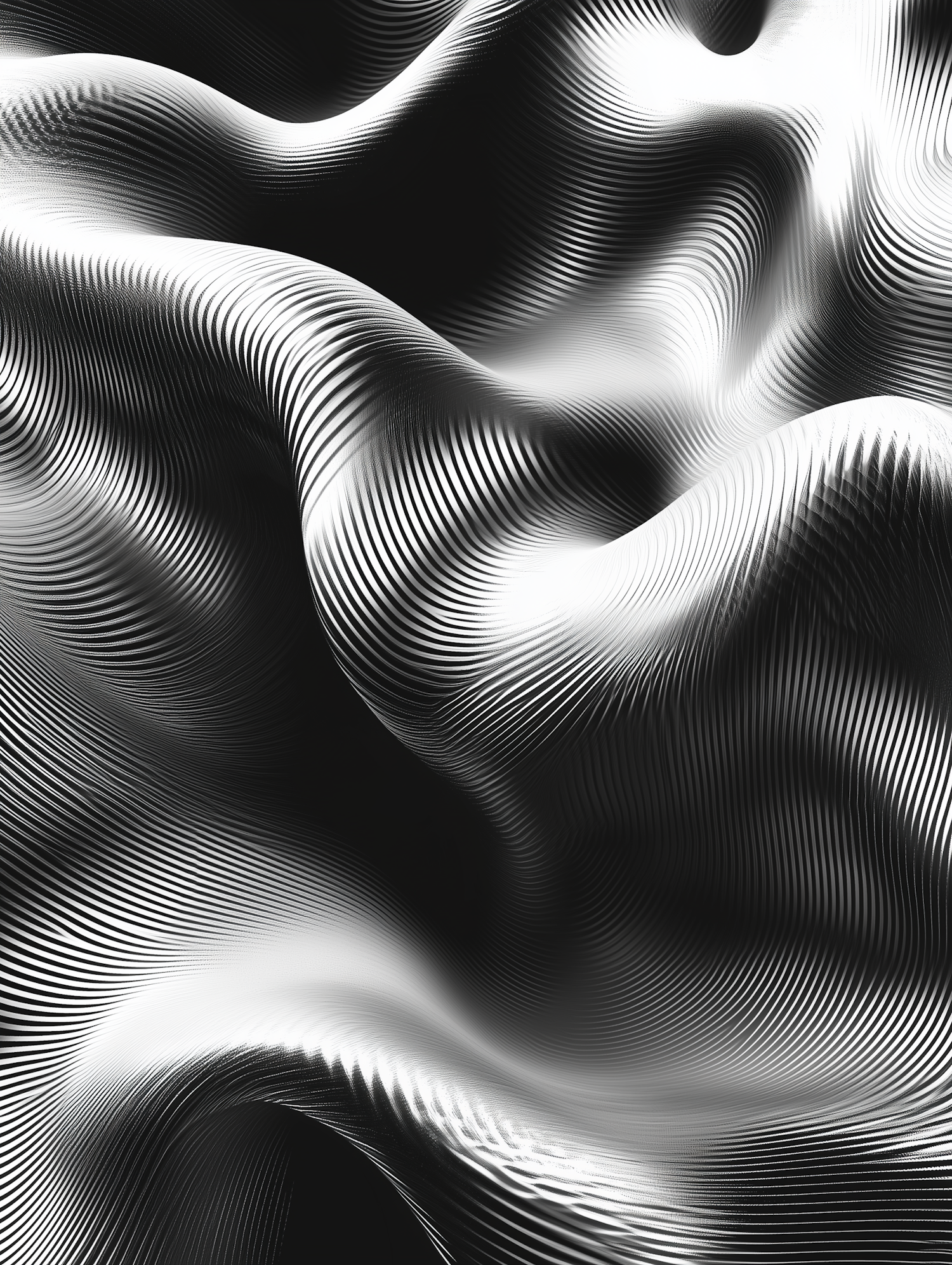 Abstract black and white waves with flowing lines creating a dynamic, rippling effect. Perfect for modern, minimalist design inspiration.