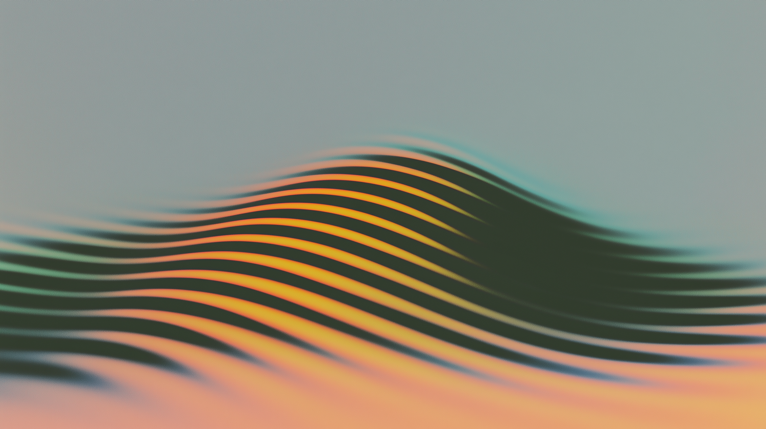 Abstract wavy lines in green, orange, and yellow gradients on a soft gray-blue background, creating a sense of motion and depth.