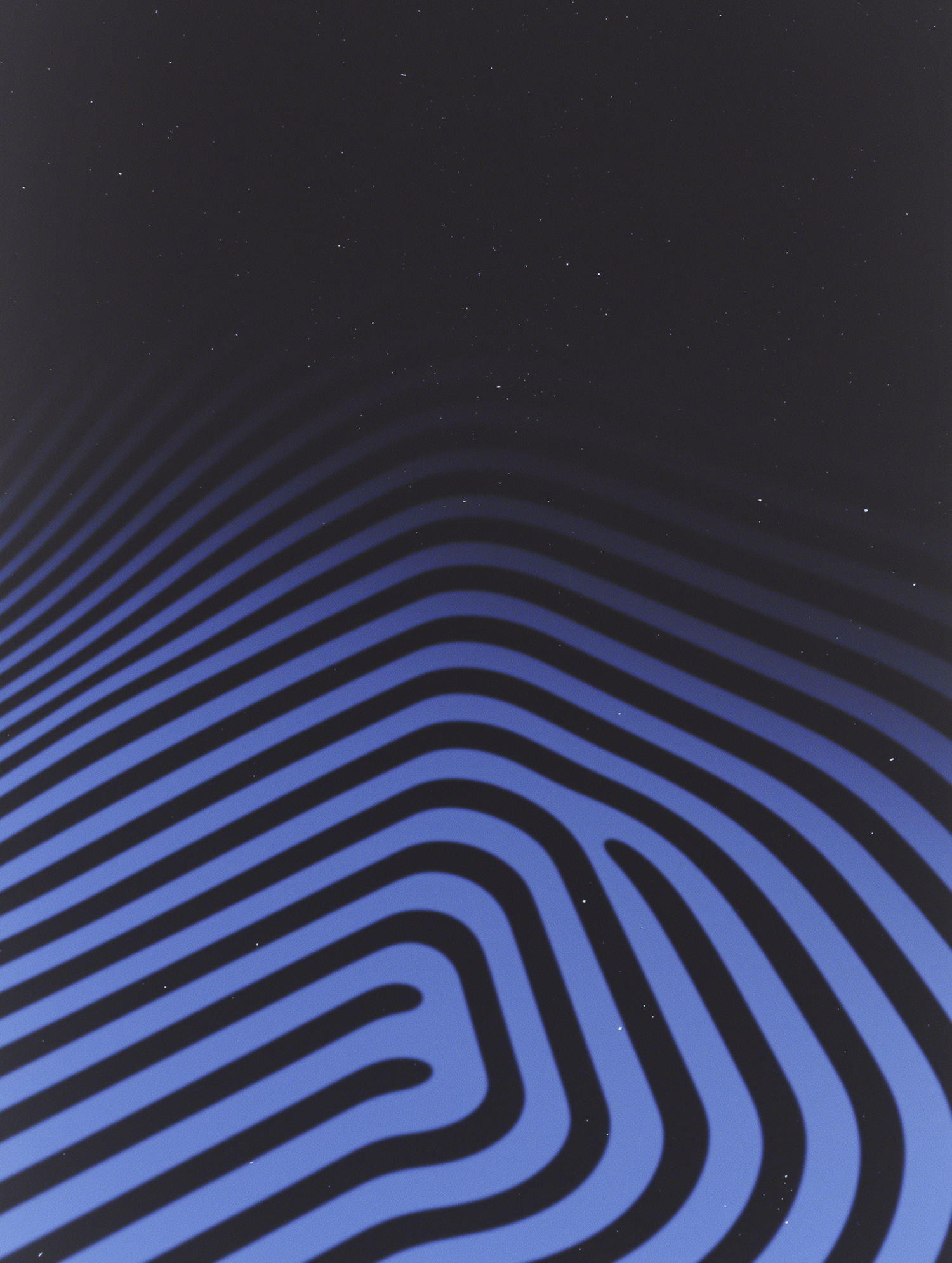 Abstract wavy blue and black lines with star-like dots on a dark background, creating a cosmic and futuristic feel.