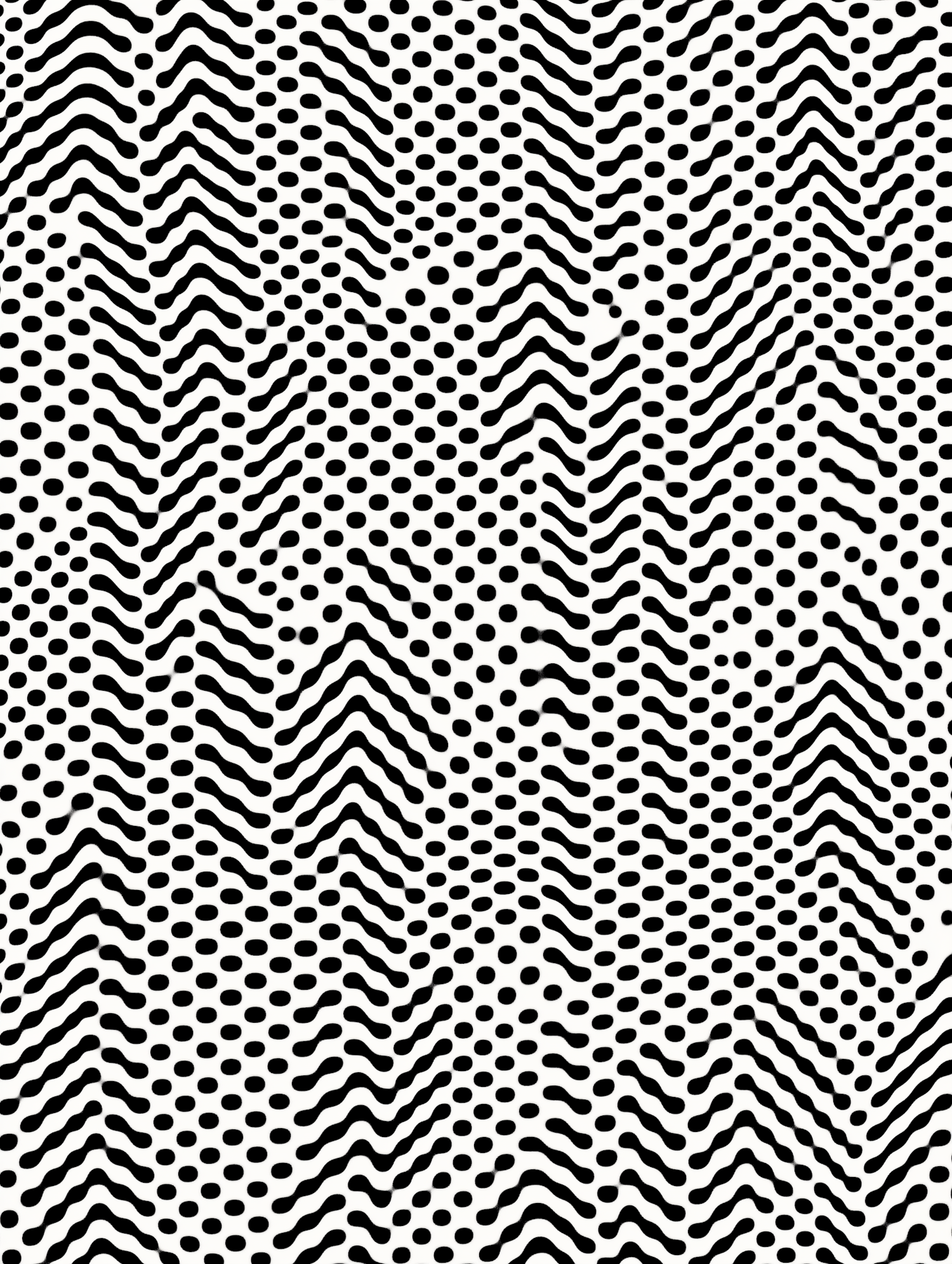 Bold black-and-white abstract pattern with wavy lines and dots, perfect for modern design, textiles, or wallpaper applications.