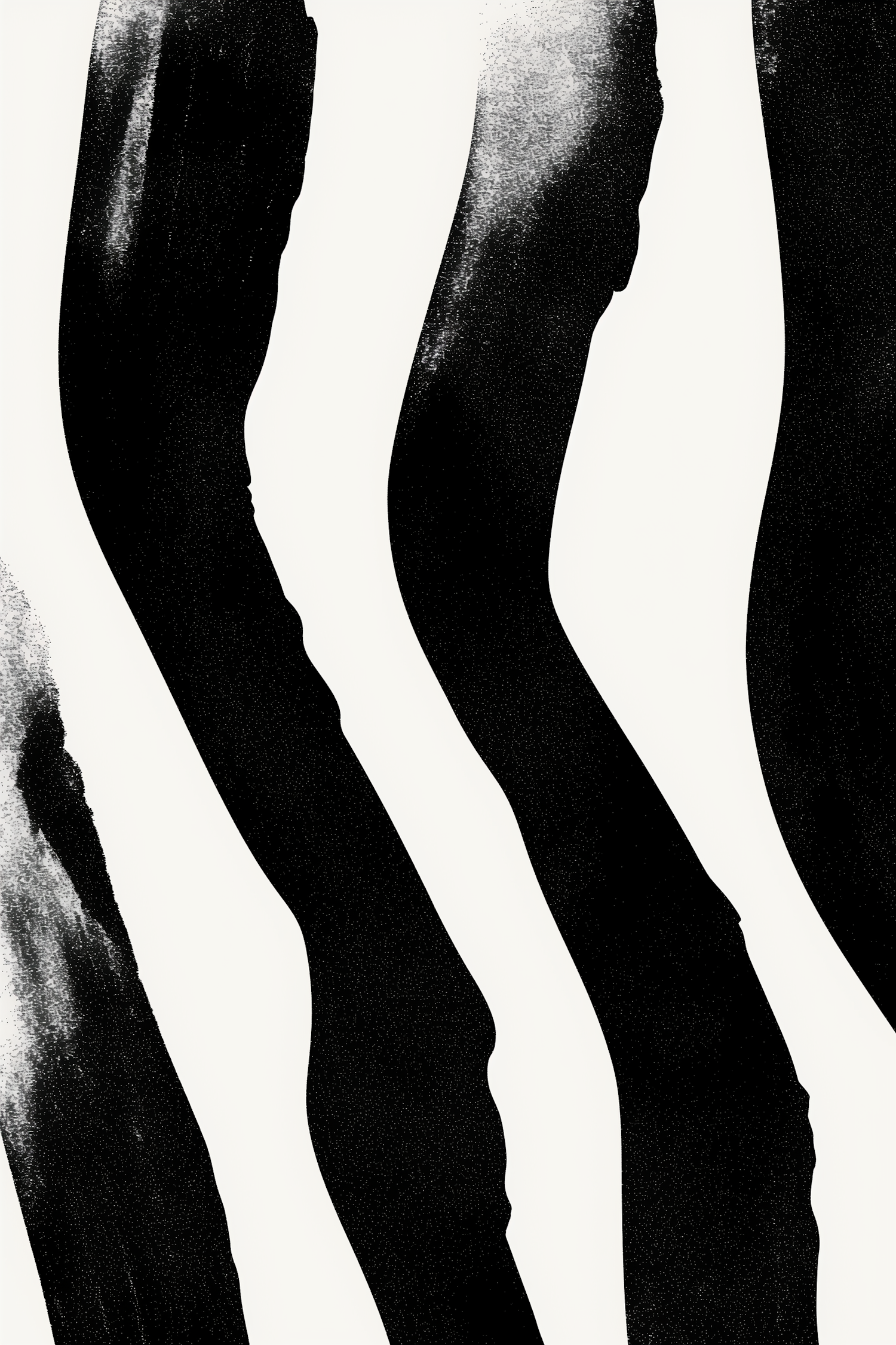 Abstract black-and-white wavy stripe pattern with textured, grainy black shapes on a white background. Minimalistic and dynamic design.