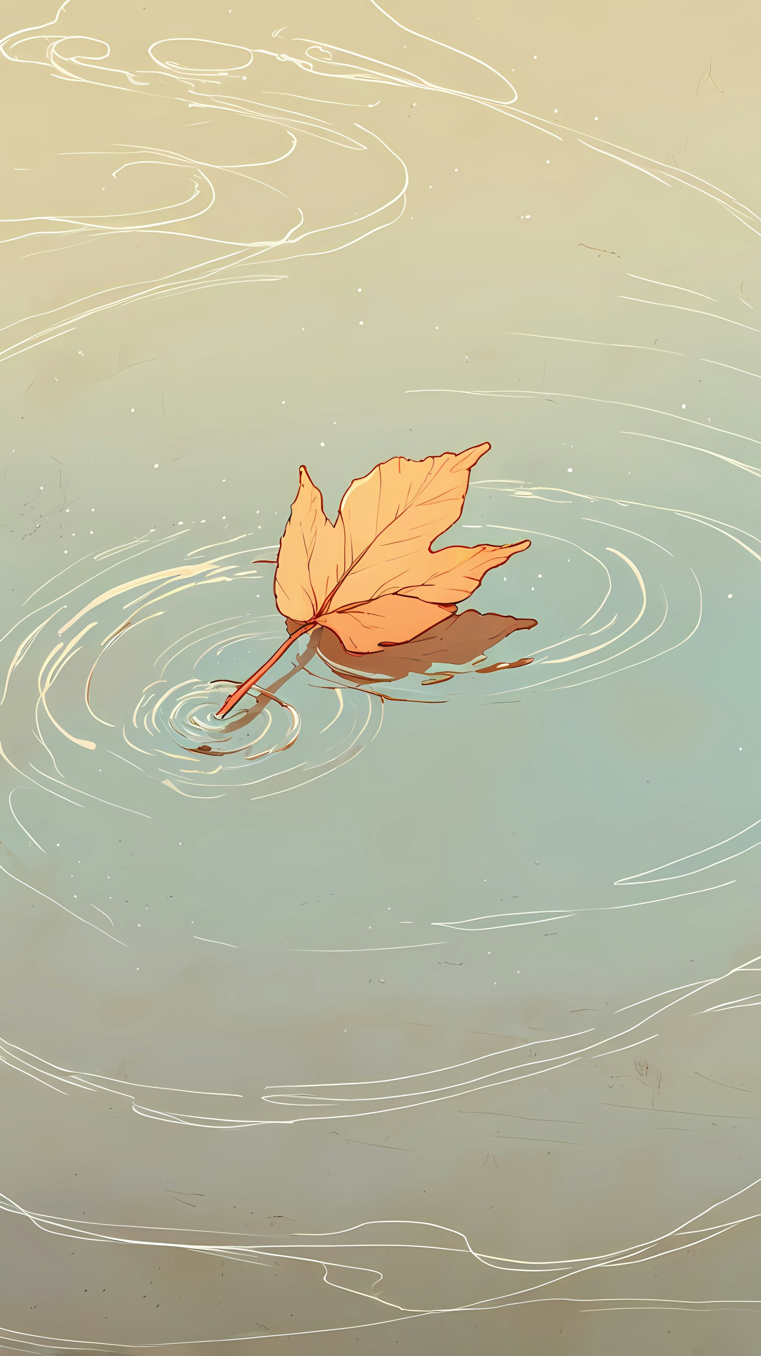 Gorgeously illustrated autumn leaf floating on tranquil water surrounded by calming ripples and a soft, gradient background.