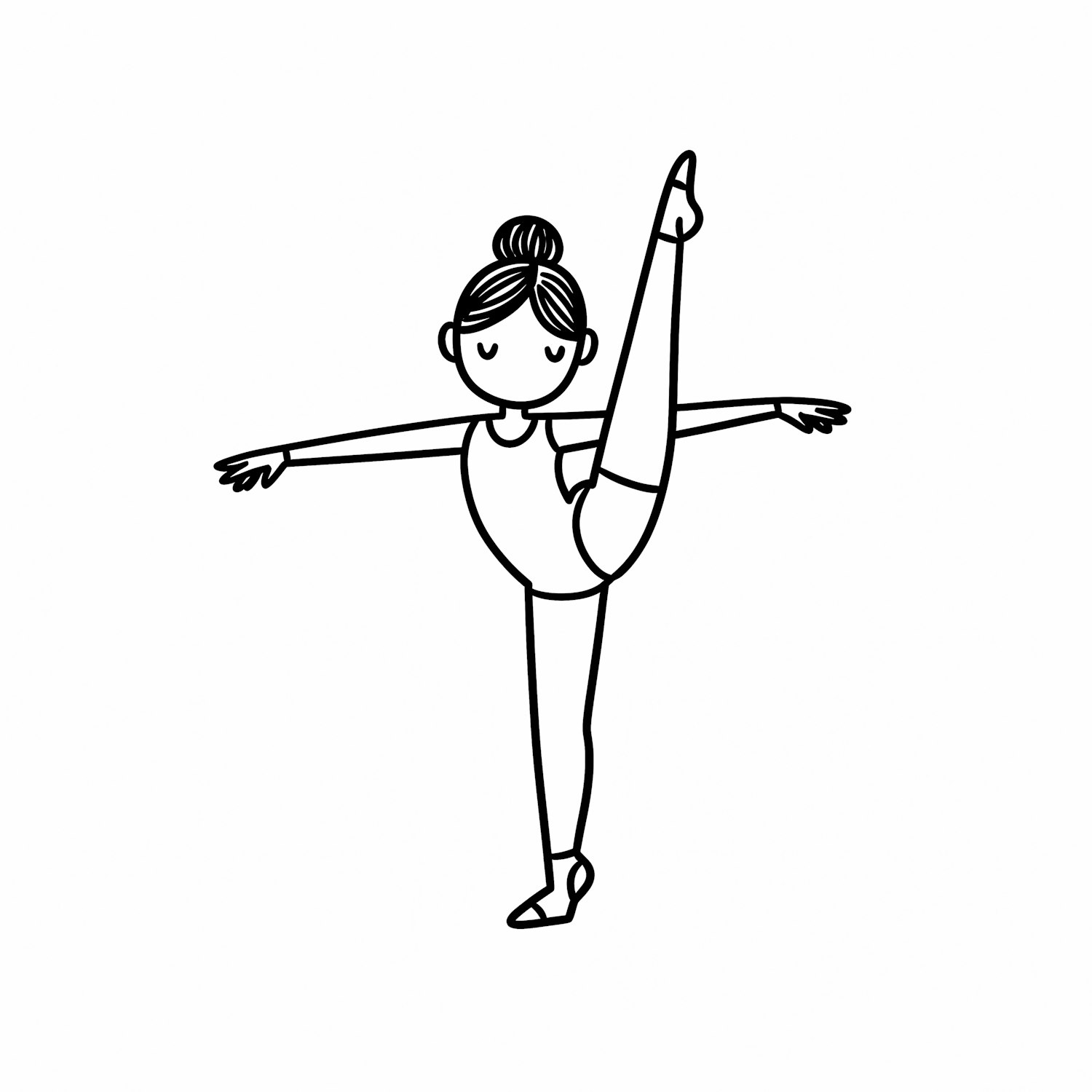Minimalistic line art of a ballerina in a high leg lift pose, showcasing balance and grace in a clean, black-and-white style.