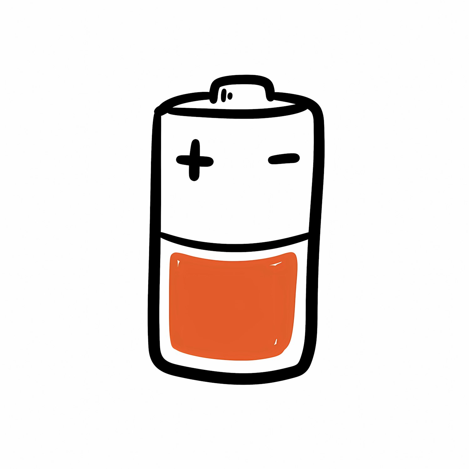 A minimalistic illustration of a battery with an orange charge level indicator, perfect for energy or technology themes.