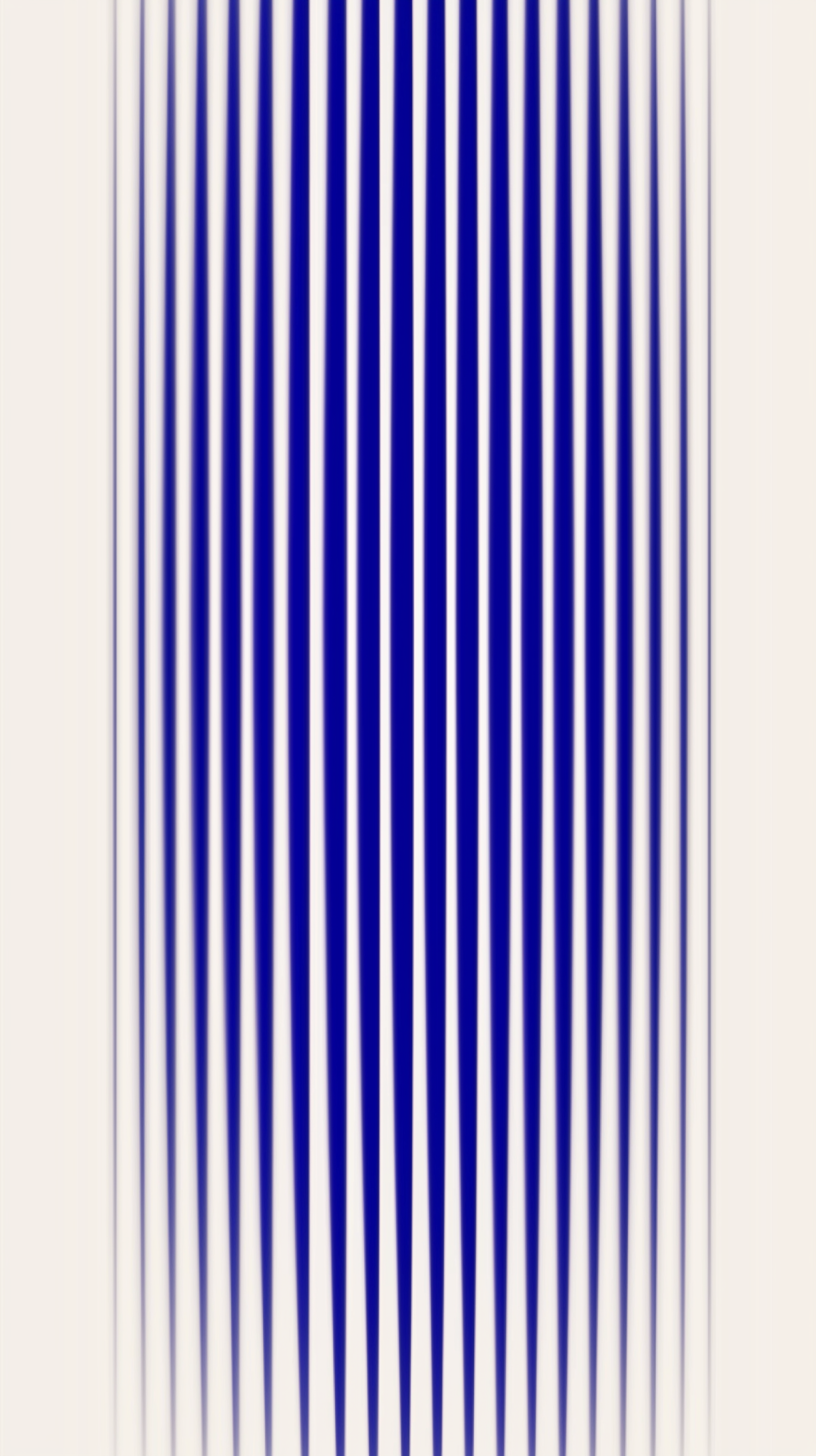 Bold vertical blue and white stripes create a striking optical illusion effect with a sense of movement and symmetry.