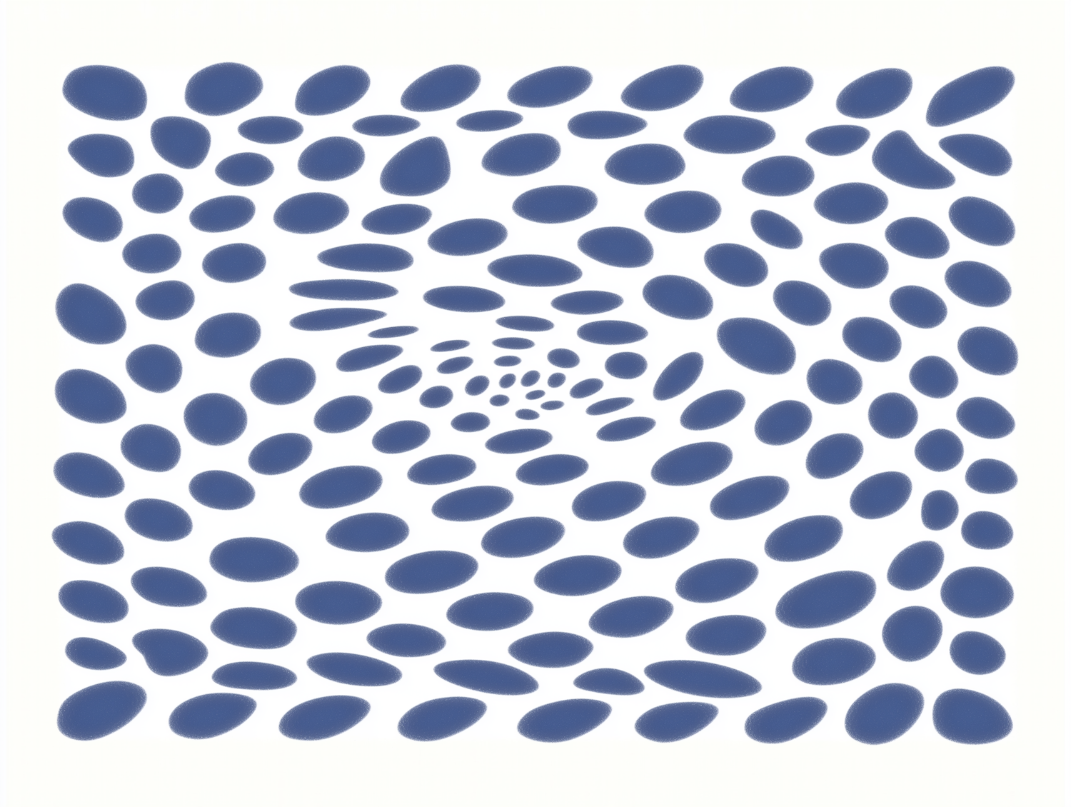 A hypnotic optical illusion with blue ovals spiraling inward on a white background, creating a sense of depth and motion.