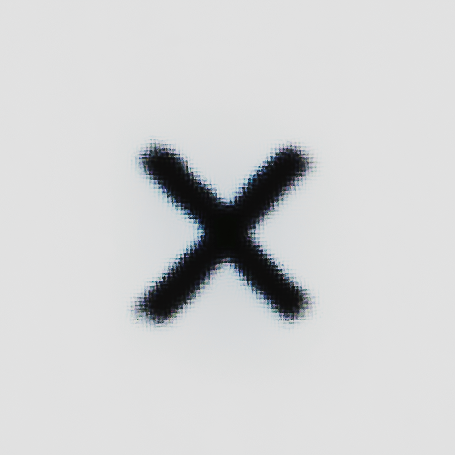 Bold black 'X' symbol on a white background, minimalistic and pixelated, creating a striking contrast.