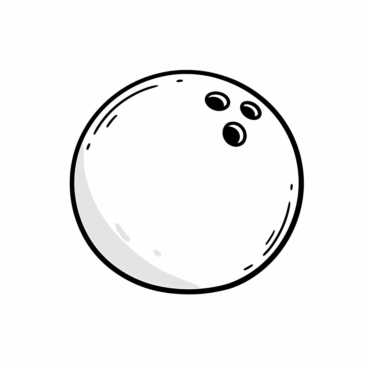 A clean black-and-white illustration of a bowling ball with three finger holes, perfect for sports or recreational themes.