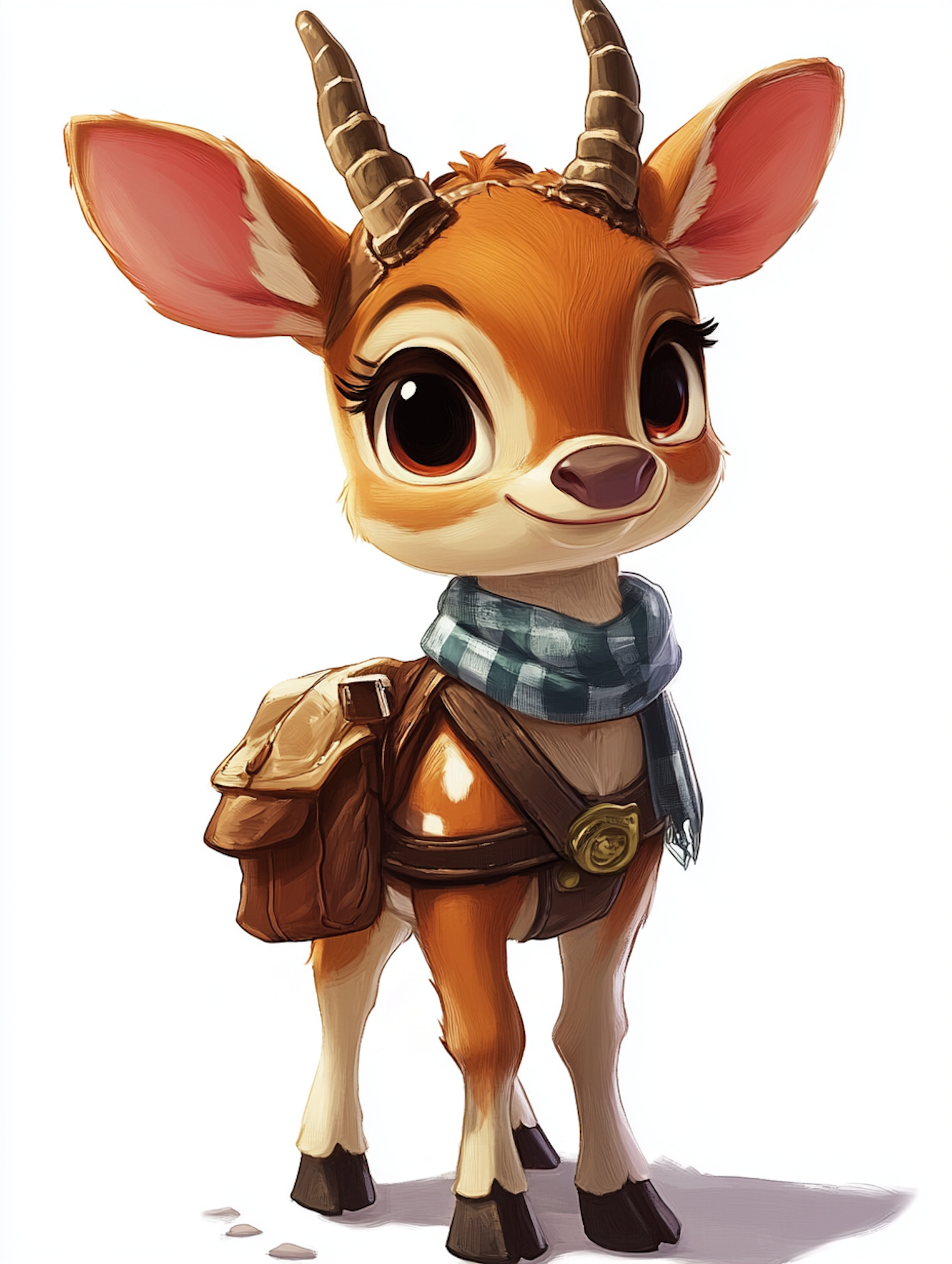 Adorable cartoon deer with a scarf and satchel, exuding charm and adventure. Perfect for children's stories or playful designs.