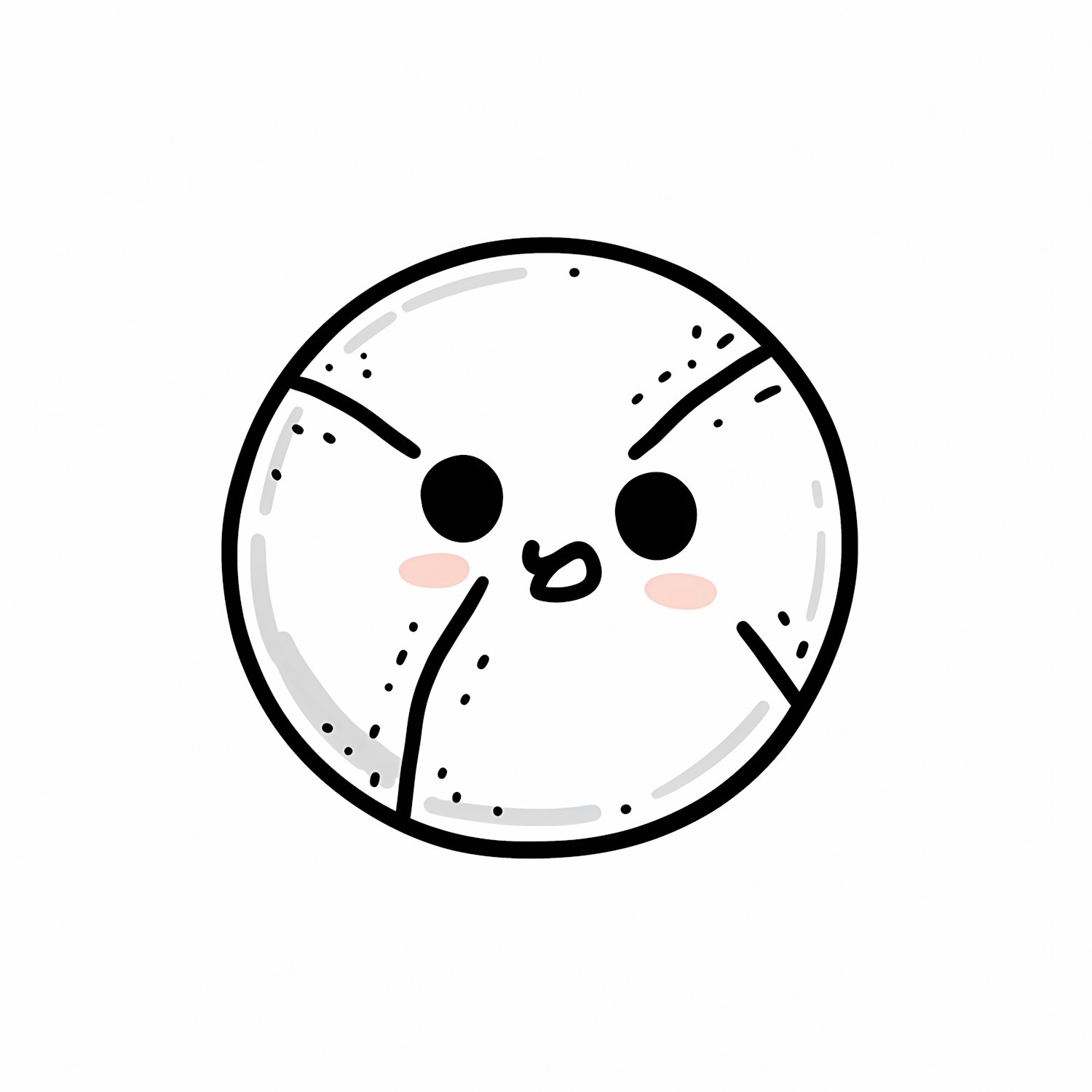 Adorable cartoon baseball with a cute face, featuring big eyes and pink cheeks, on a clean white background.