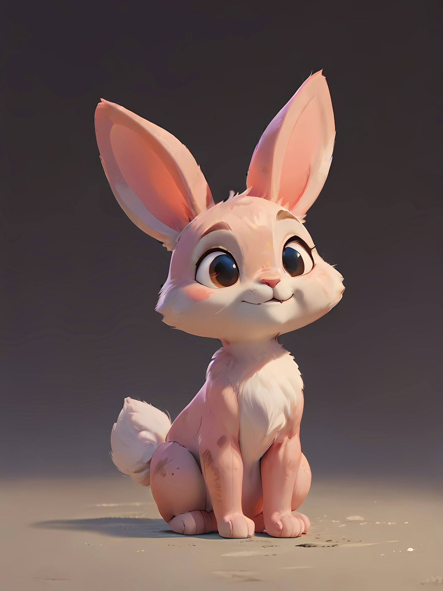 Adorable 3D cartoon bunny with pink and white fur, big blue eyes, and a curious expression. Perfect for kids' content or cute designs.
