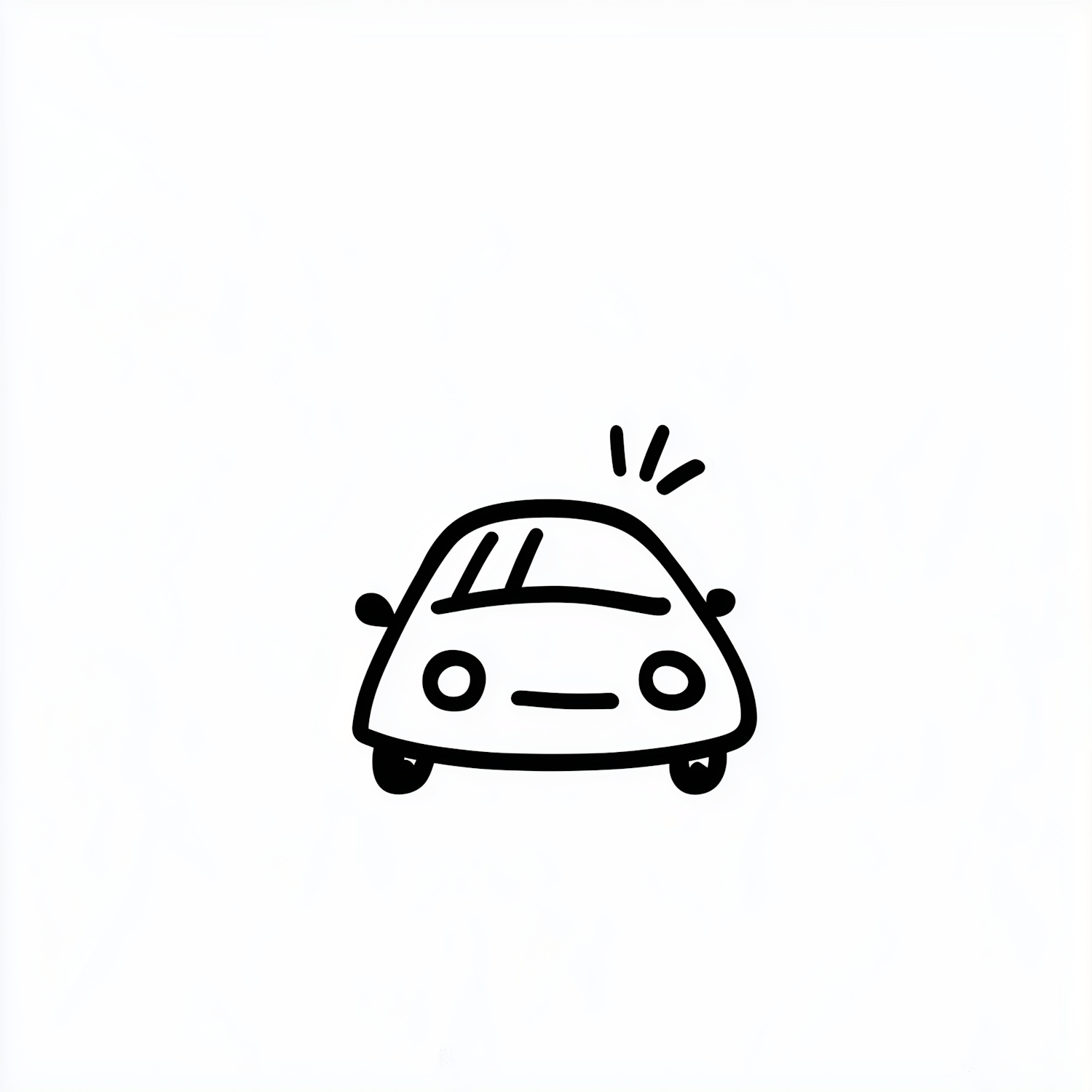 Minimalist cartoon car illustration with rounded body, circular headlights, and motion lines on a plain white background.