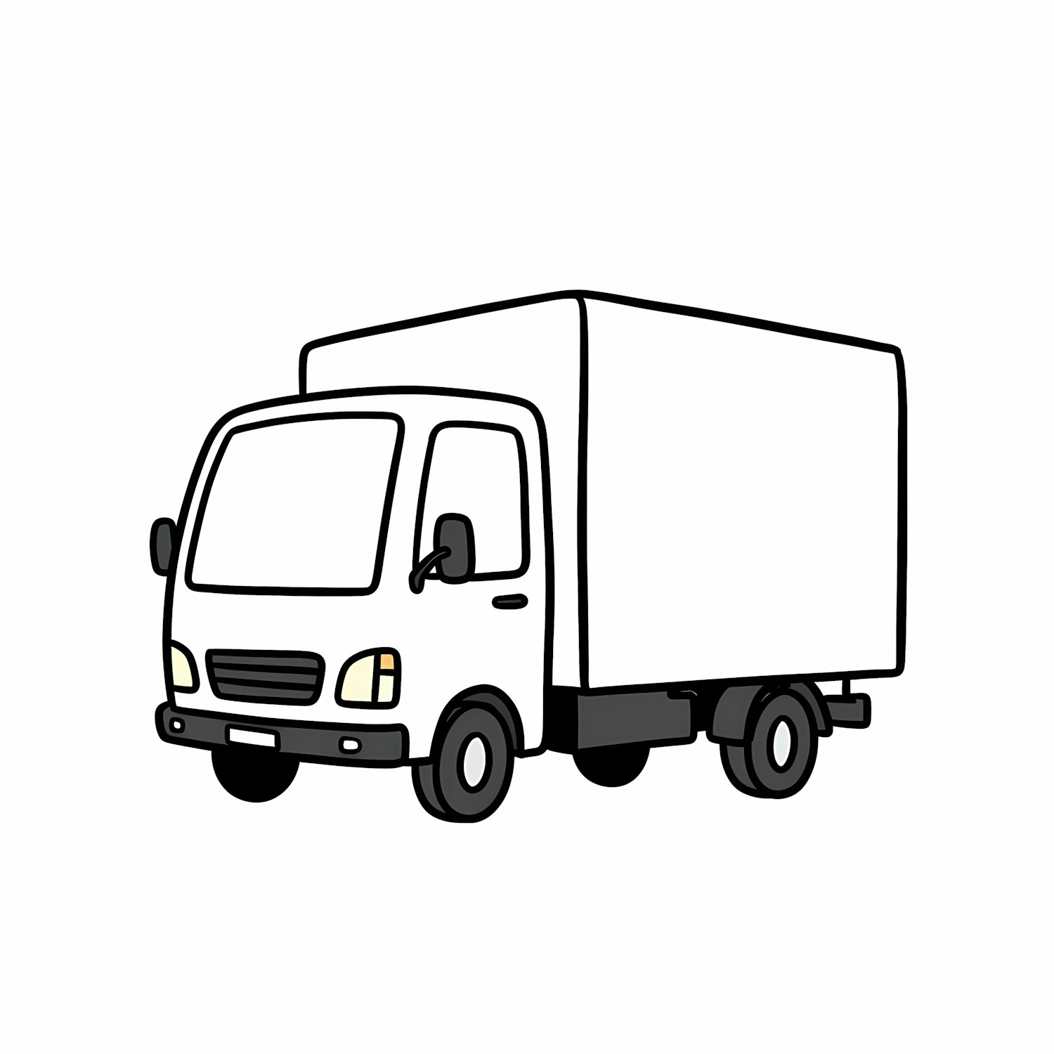Cartoon-style illustration of a white delivery truck with a boxy cargo area, clean lines, and a plain white background.