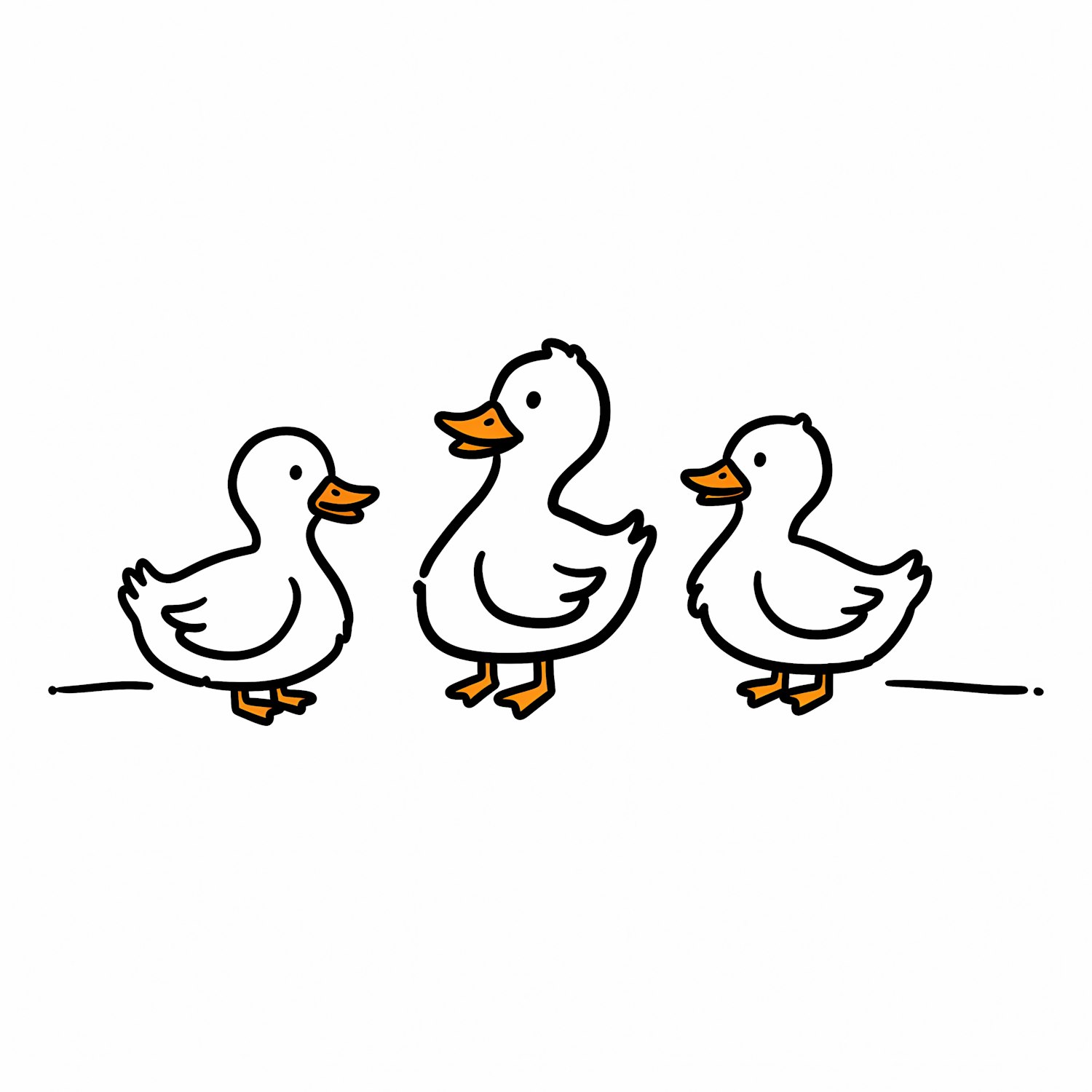 A cute illustration of three white ducks with orange beaks and feet, drawn in a simple cartoon style on a plain white background.