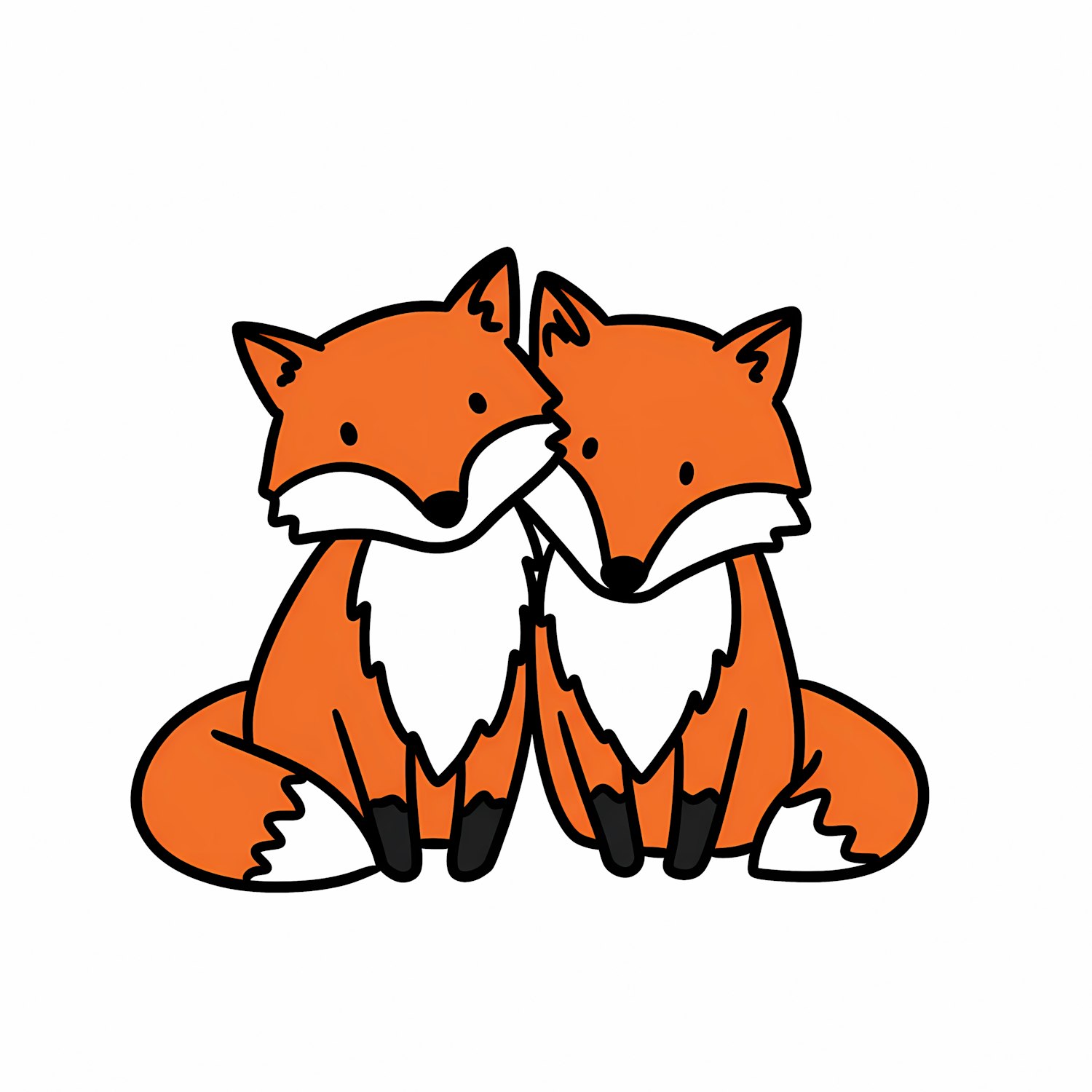 Adorable cartoon foxes sitting together, showcasing bright orange fur and white accents, perfect for a playful and cheerful design.
