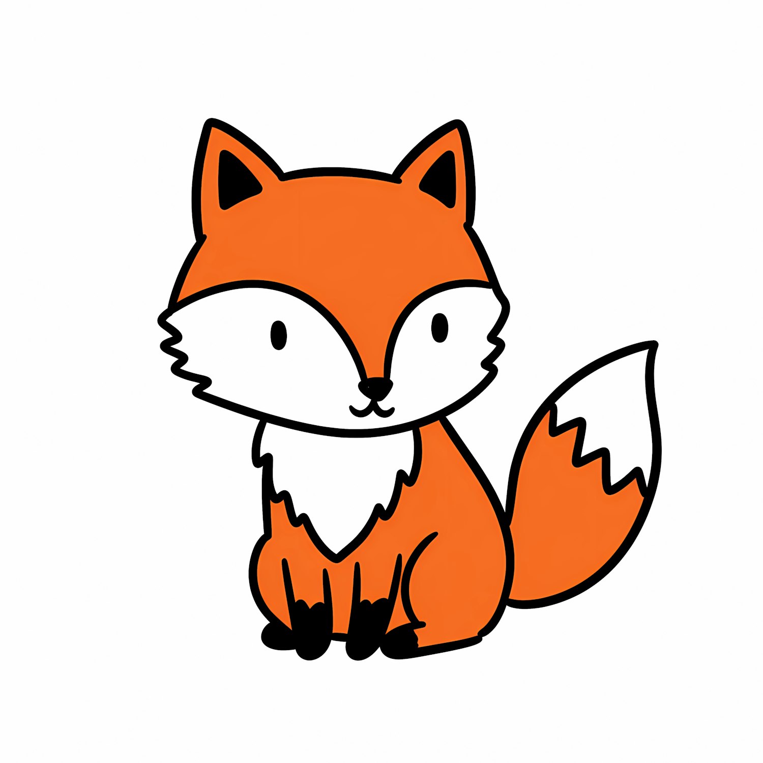 Cute cartoon fox illustration with bright orange fur, white accents, and a bushy tail, perfect for kids' designs or educational materials.