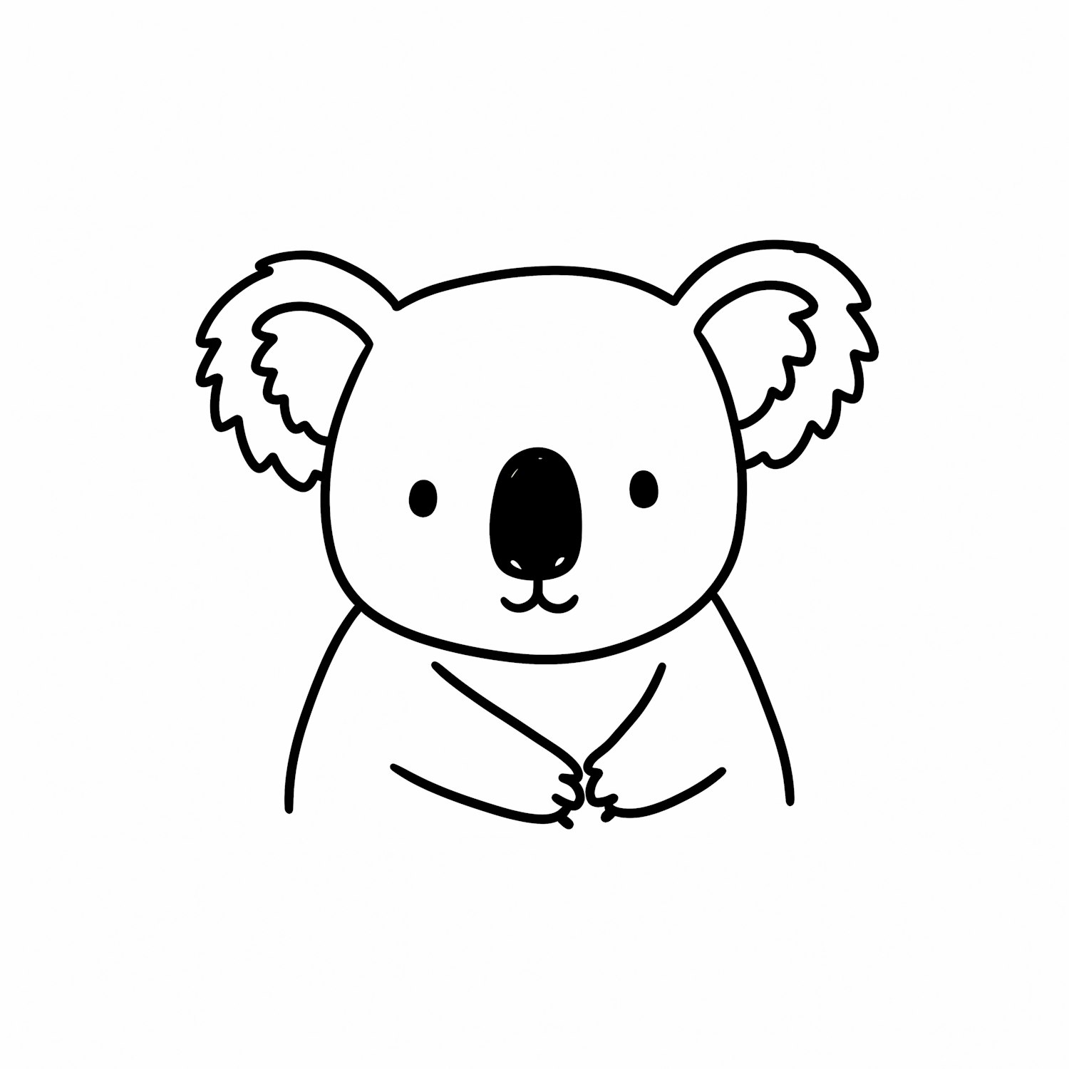 A cute black-and-white cartoon drawing of a koala with a simple and clean design, perfect for kids' projects or minimalist art lovers.