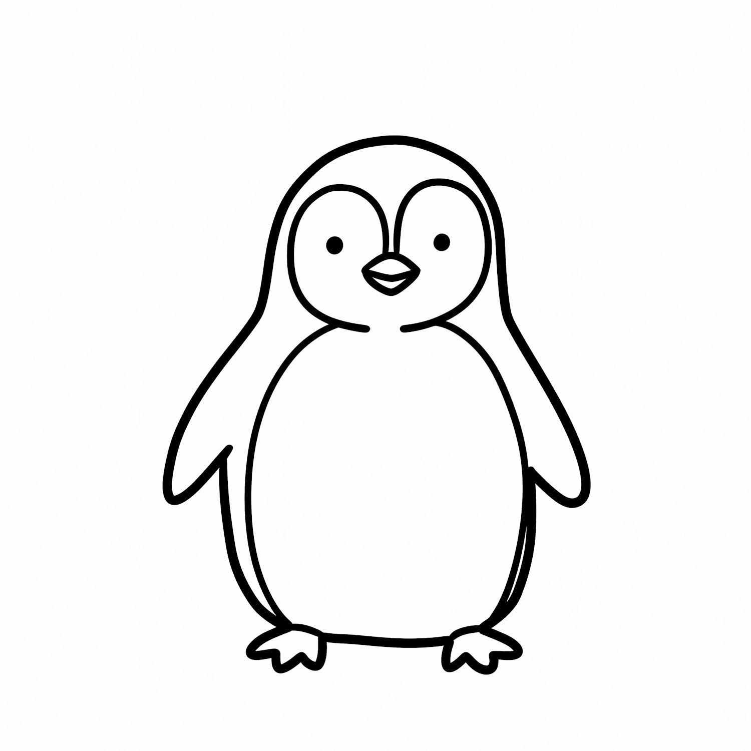 A cute black-and-white line drawing of a cartoon penguin, perfect for coloring or educational activities.