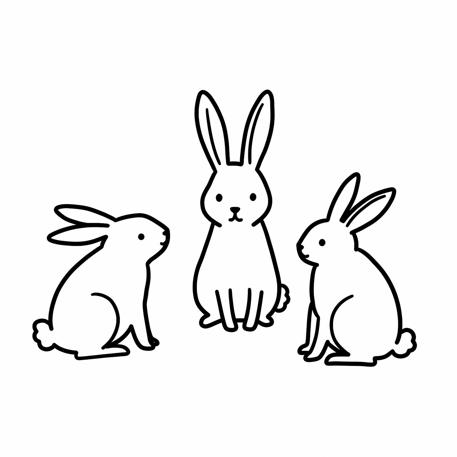 A minimalist black-and-white line art illustration of three rabbits sitting together, showcasing a clean and simple design.