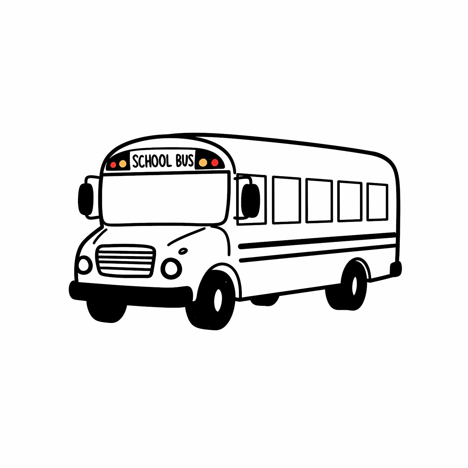 A clean black-and-white cartoon illustration of a school bus, featuring bold outlines and a simple design.
