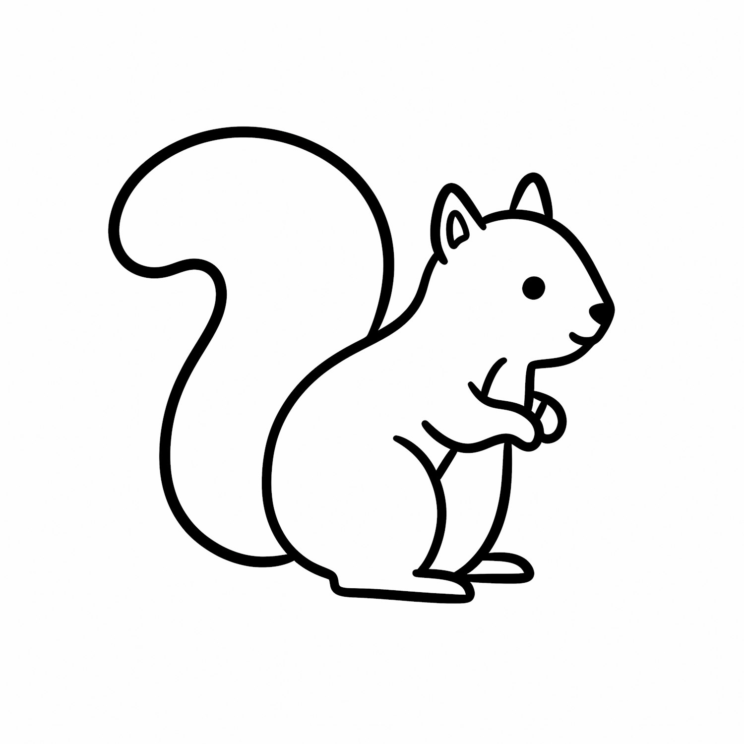 A cute black-and-white cartoon squirrel illustration, perfect for coloring or simple design projects.