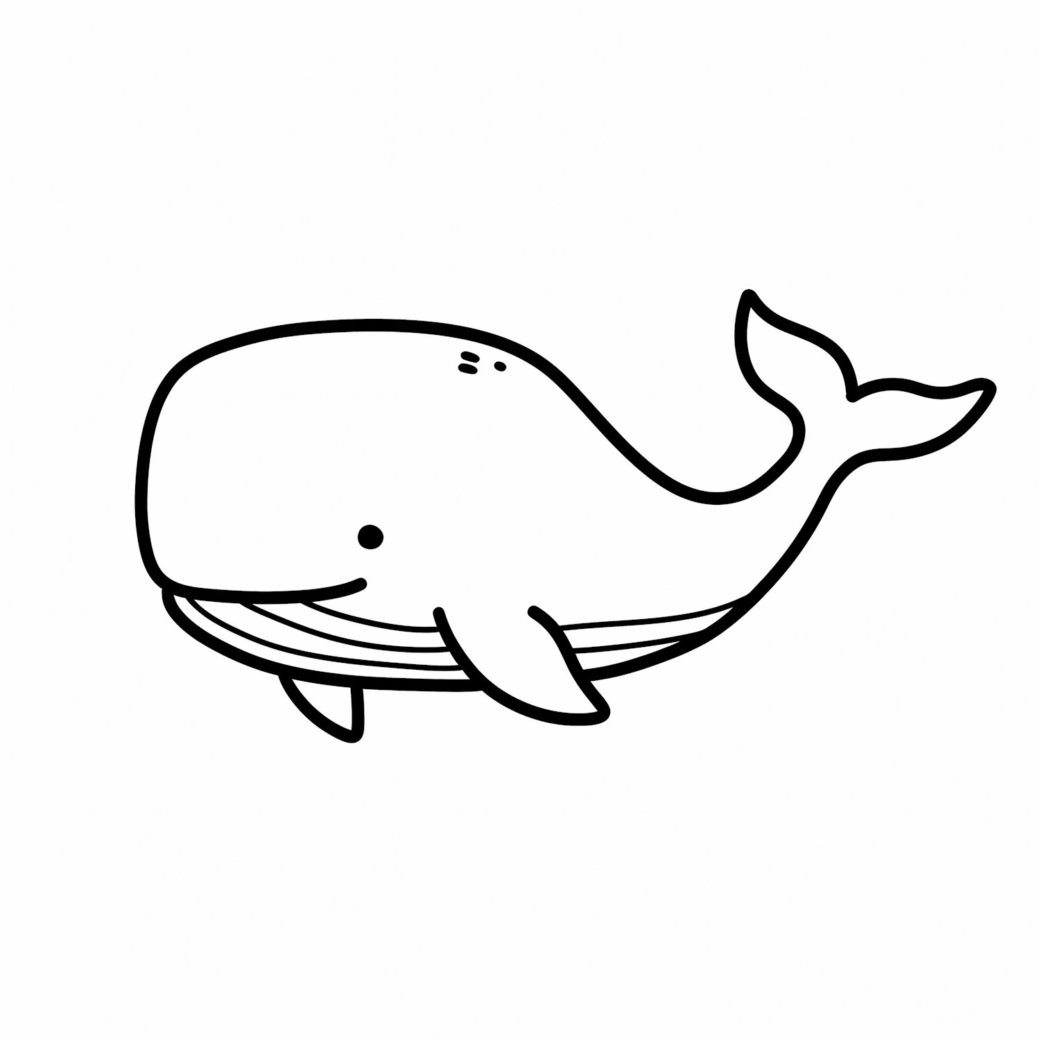 A cute black-and-white cartoon whale illustration, perfect for kids' activities or coloring pages.