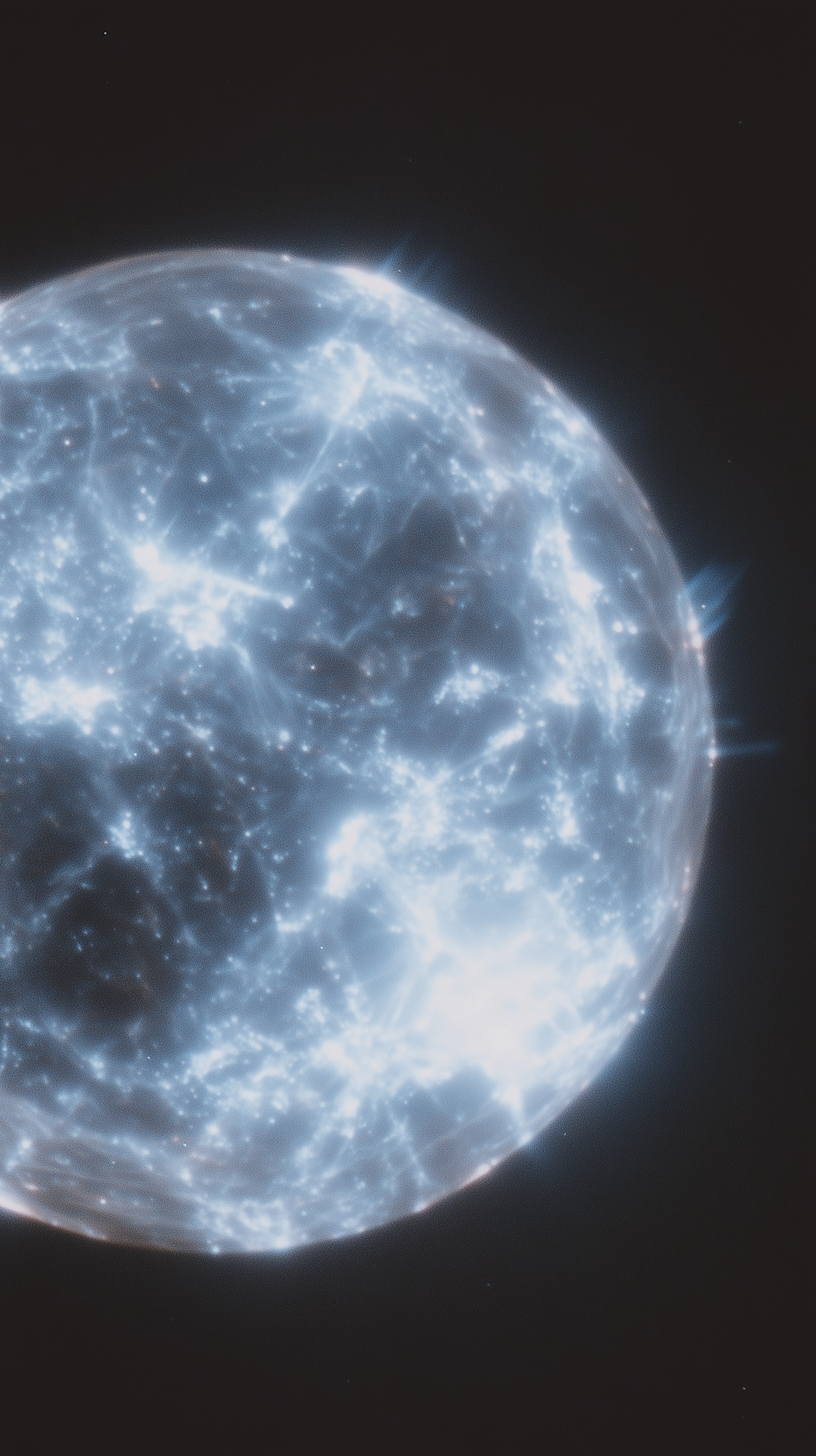 Brilliant celestial sphere glowing with a beautiful, bluish-white light, set against the dark expanse of space.