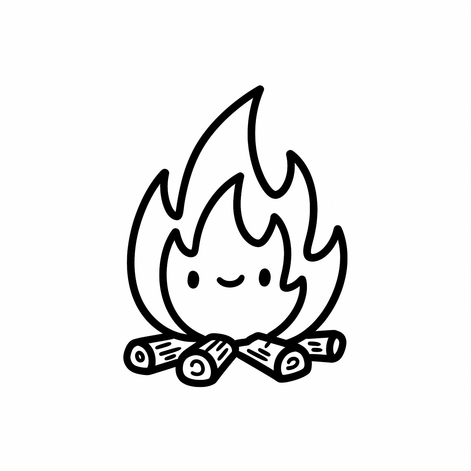 A cute black-and-white cartoon of a smiling campfire with logs, perfect for fun and lighthearted designs.