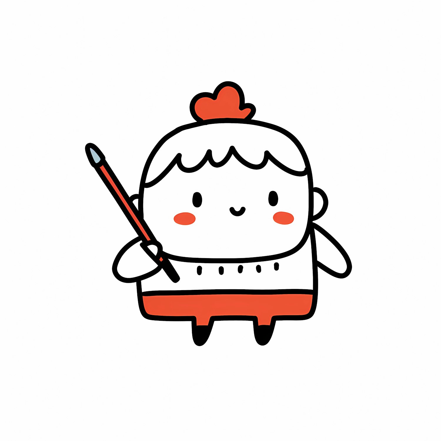 Adorable cartoon character holding a red pencil, featuring a simple and cheerful design with bold outlines and minimal colors.