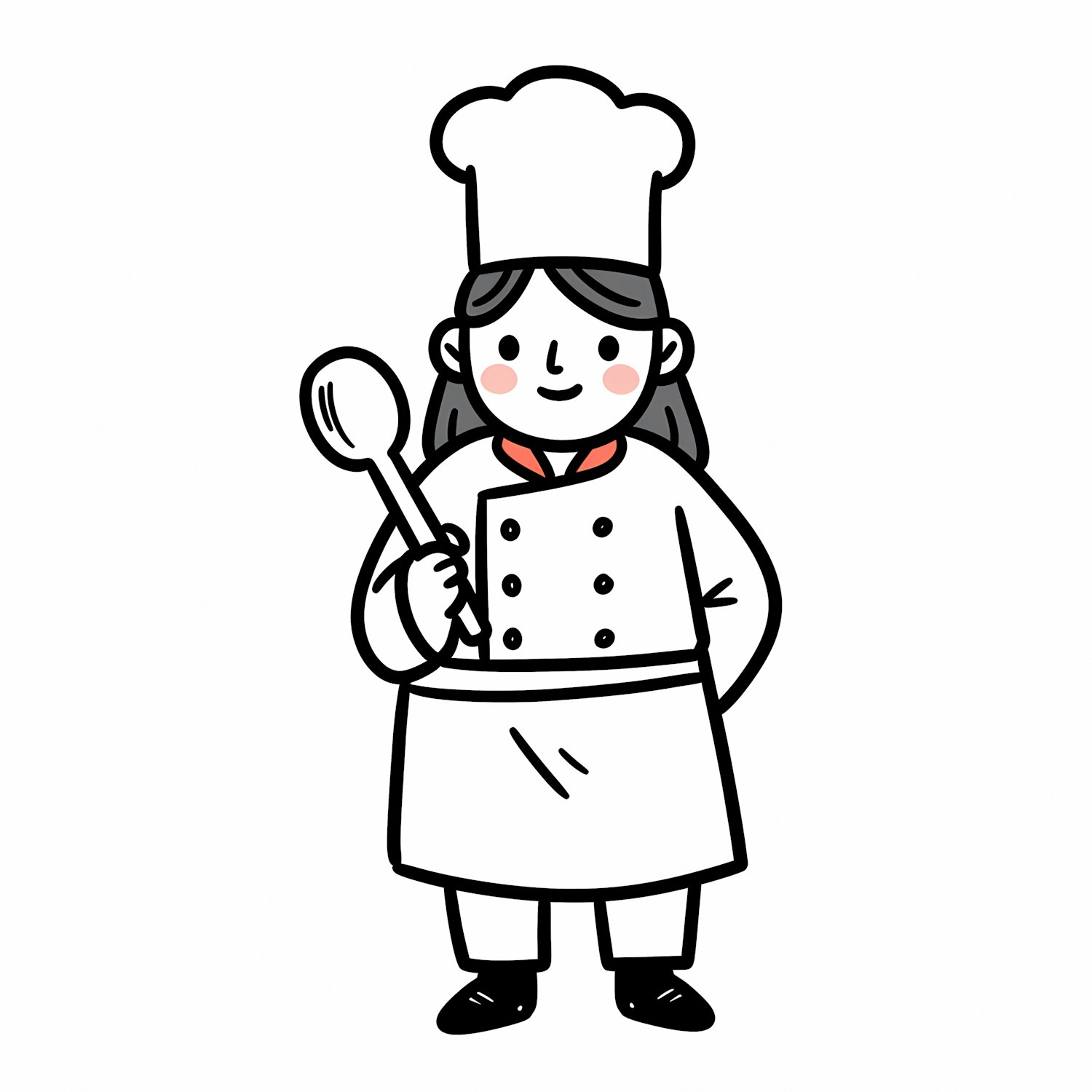 Cartoon chef character in a white uniform and hat, holding a wooden spoon, with a cheerful expression and rosy cheeks.