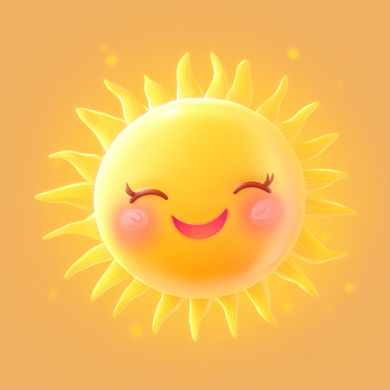 Cheerful cartoon sun with a smiling face and rosy cheeks, set against a warm orange background. Perfect for bright, happy designs.