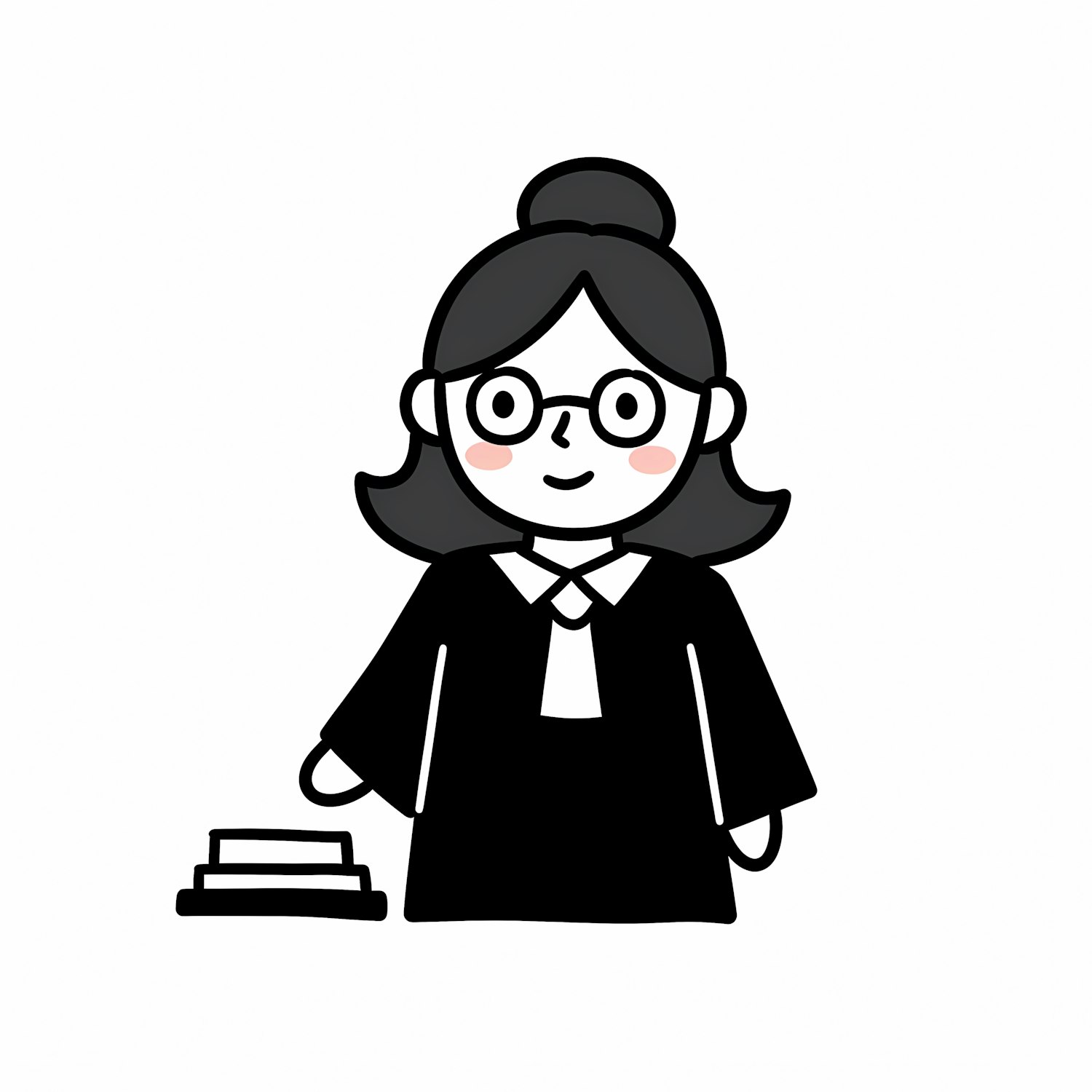 Cartoon illustration of a cheerful person in a black robe with glasses, standing by books, on a clean white background.