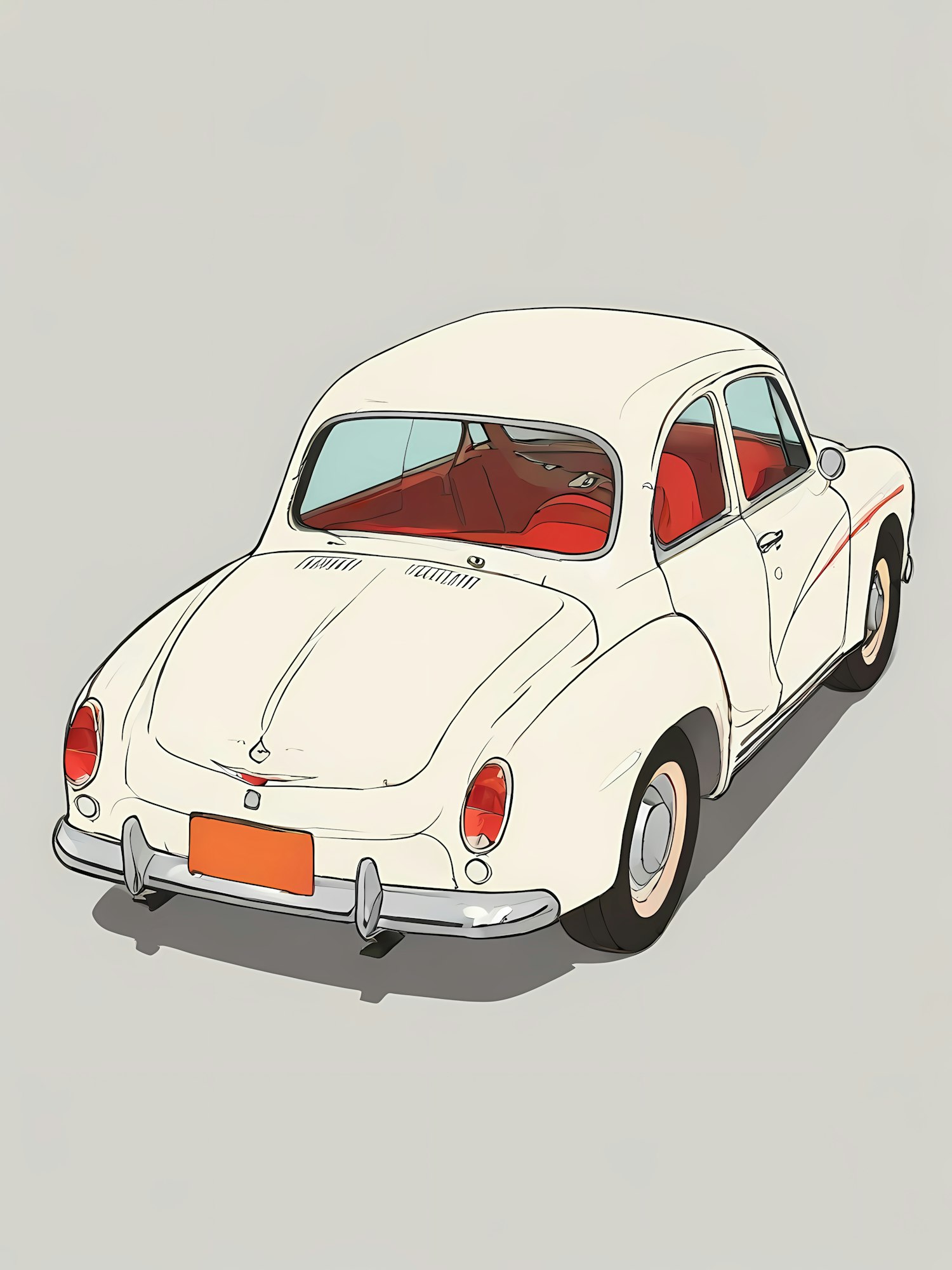 Illustration of a vintage white car with red interior, showcasing classic design and retro charm against a light gray background.