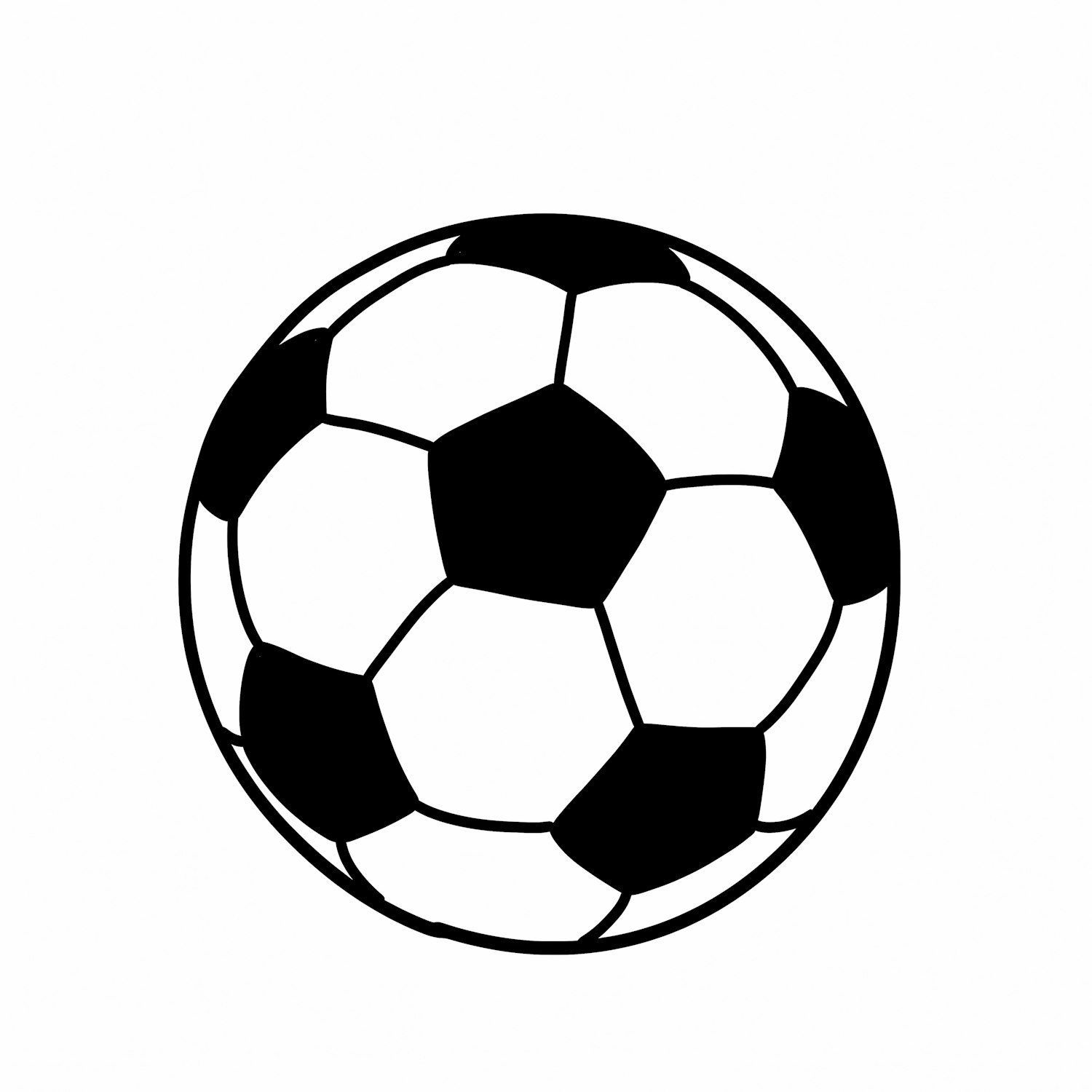 Black-and-white illustration of a classic soccer ball with pentagonal and hexagonal panels.