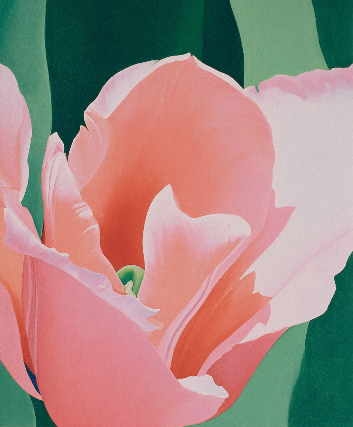 Close-up of a beautiful pink flower with delicate petals against a vibrant green background, showcasing nature's elegance.