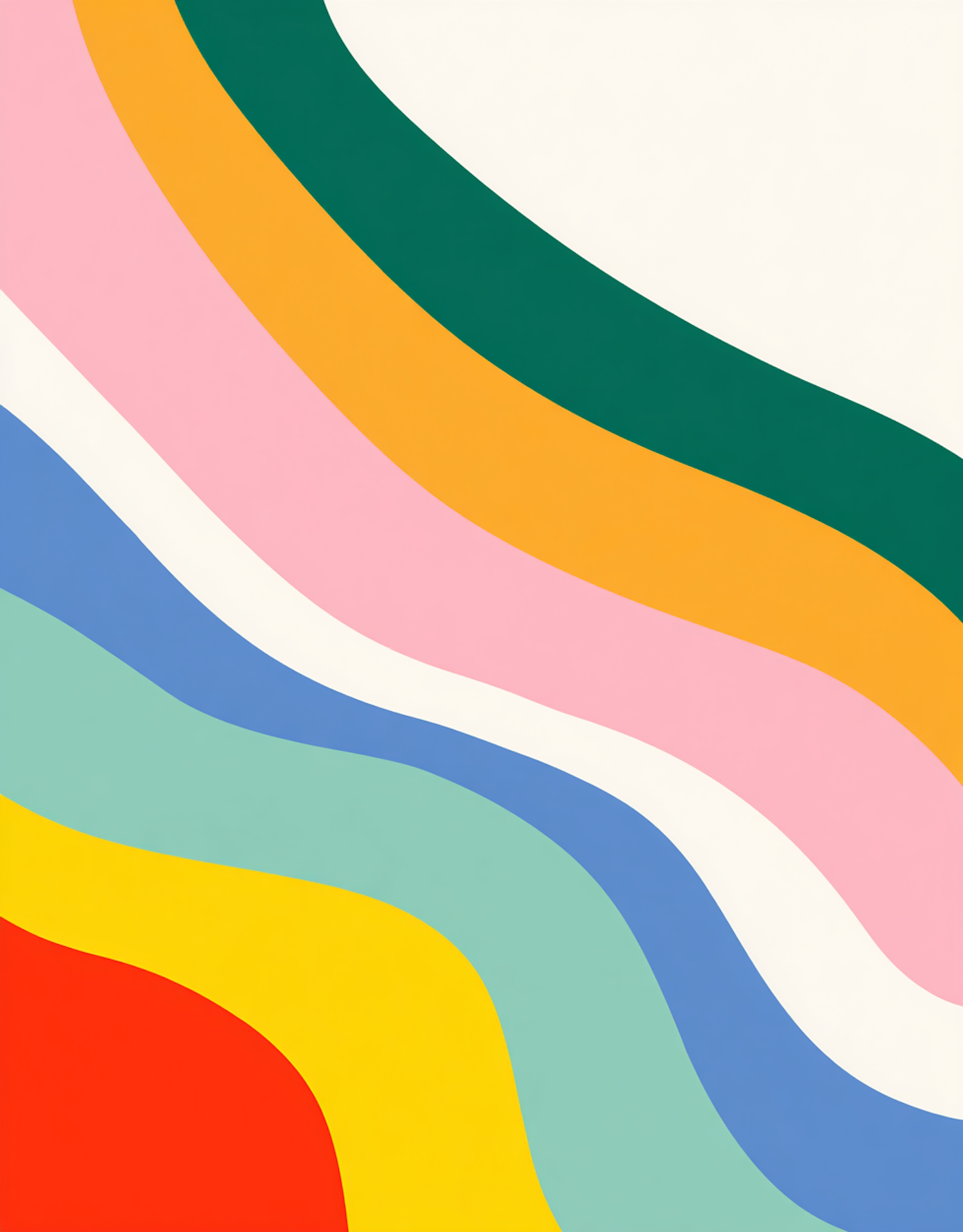 Vibrant curving stripes of yellow, red, pink, green, blue enhance this colorful vector design on a white background.