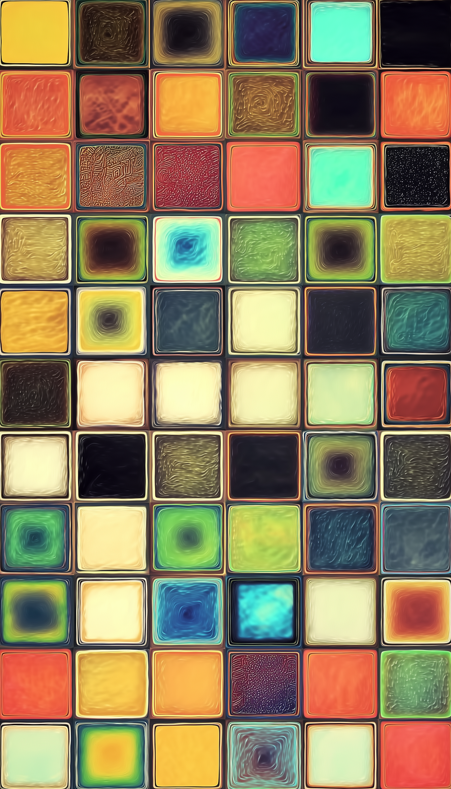 A vibrant grid of colorful squares with unique textures and hues, creating a visually dynamic and abstract composition.