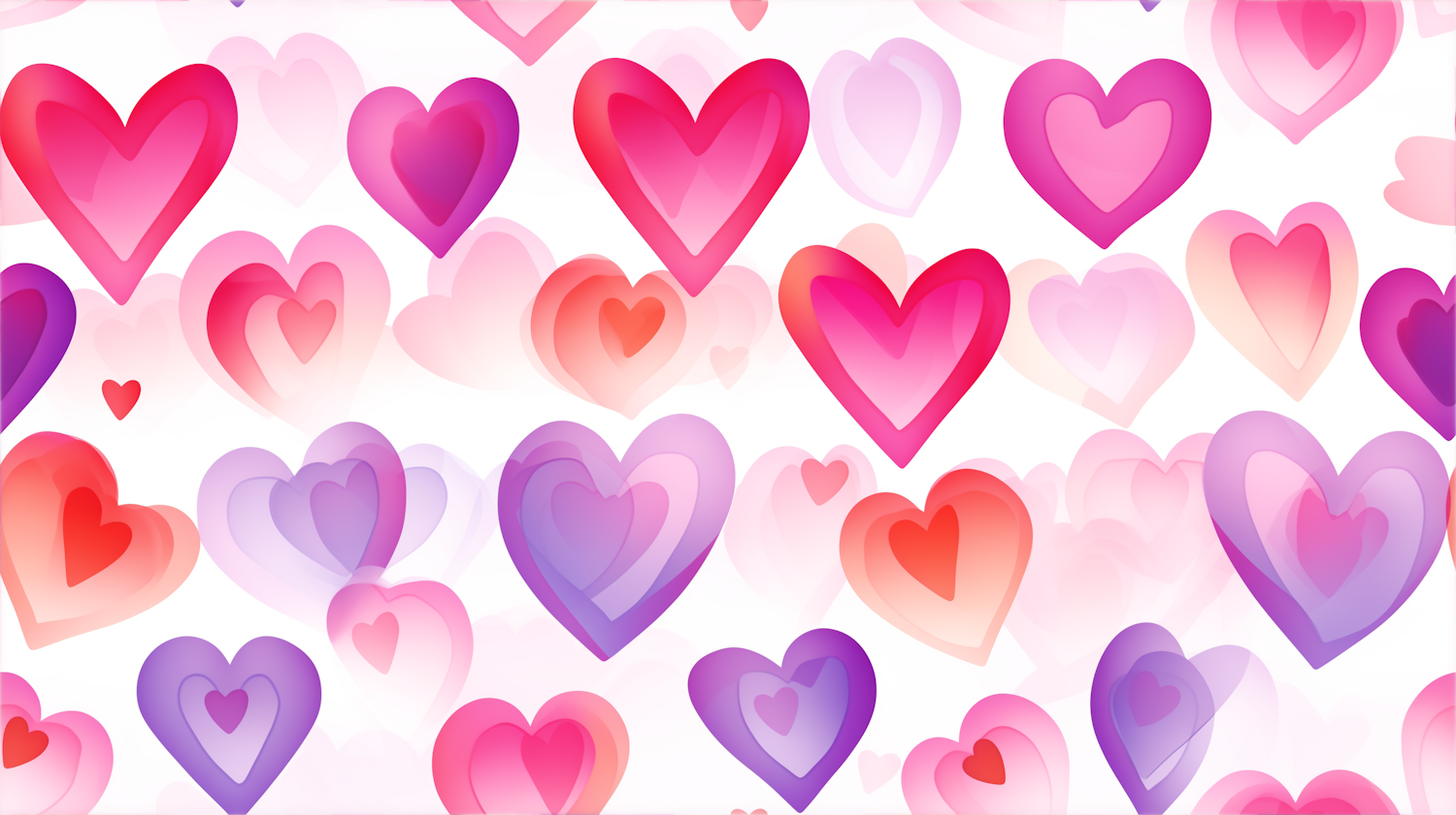 Colorful heart pattern illustration with pink, red, and purple hearts on a white background, creating a romantic and playful vibe.