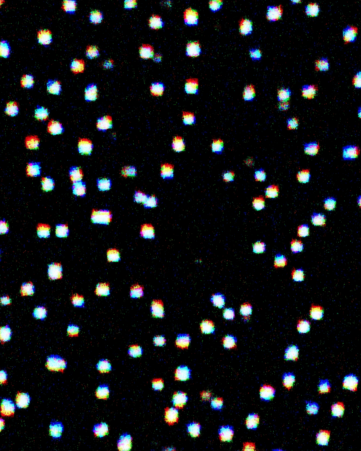 Colorful glowing dots scattered on a black background, resembling a pixelated starry night with a vibrant rainbow effect.