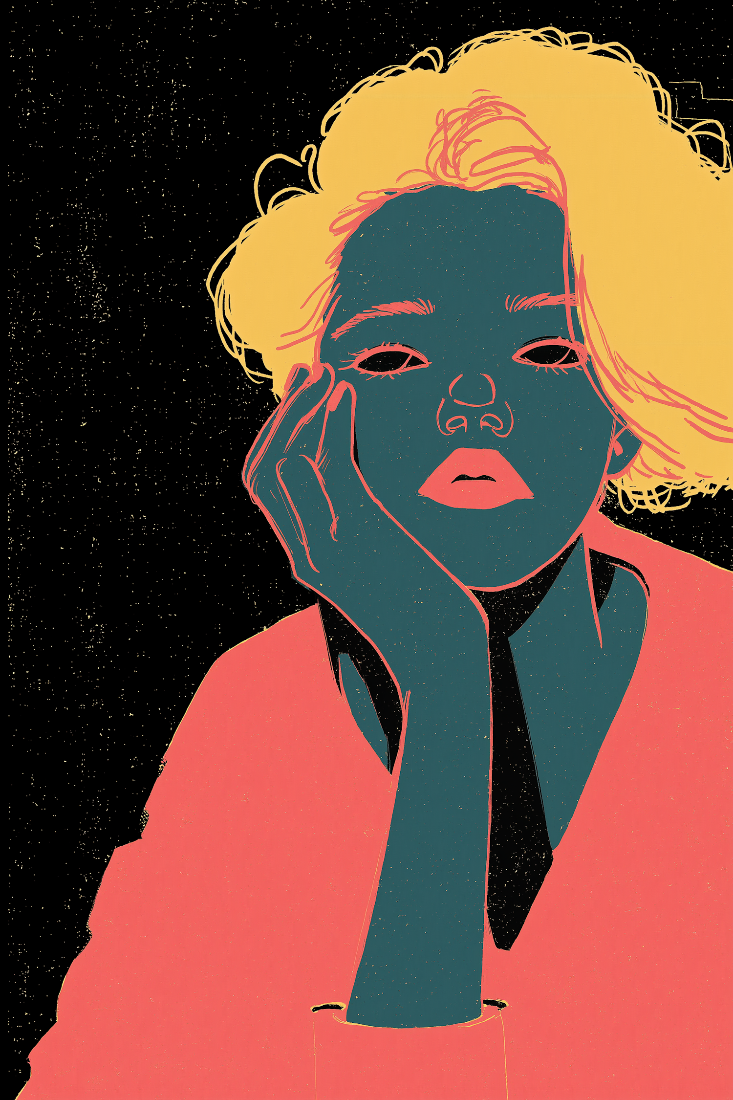 Stylized illustration of a person with vibrant colors and a textured black background, showcasing a modern and artistic aesthetic.