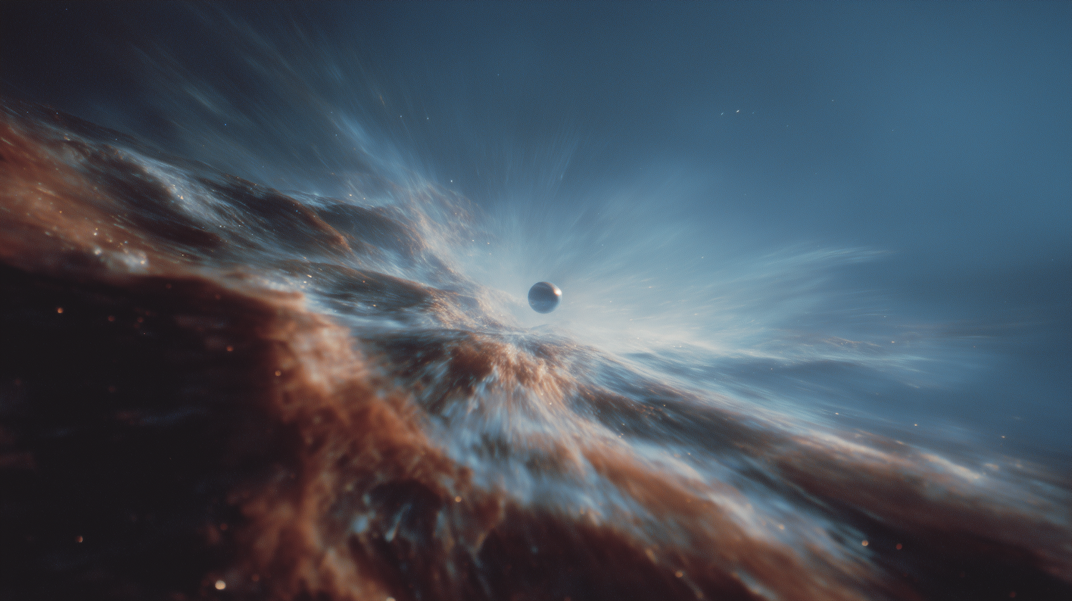A stunning cosmic scene of a black hole with a glowing accretion disk, showcasing dynamic motion and vibrant colors in space.