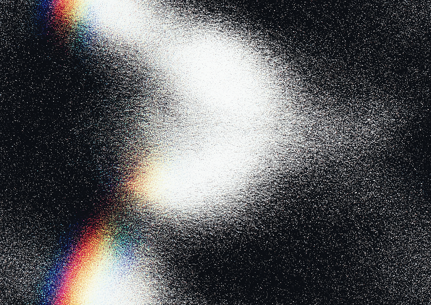 Abstract light effect with rainbow spectral bands on a dark, starry textured background.