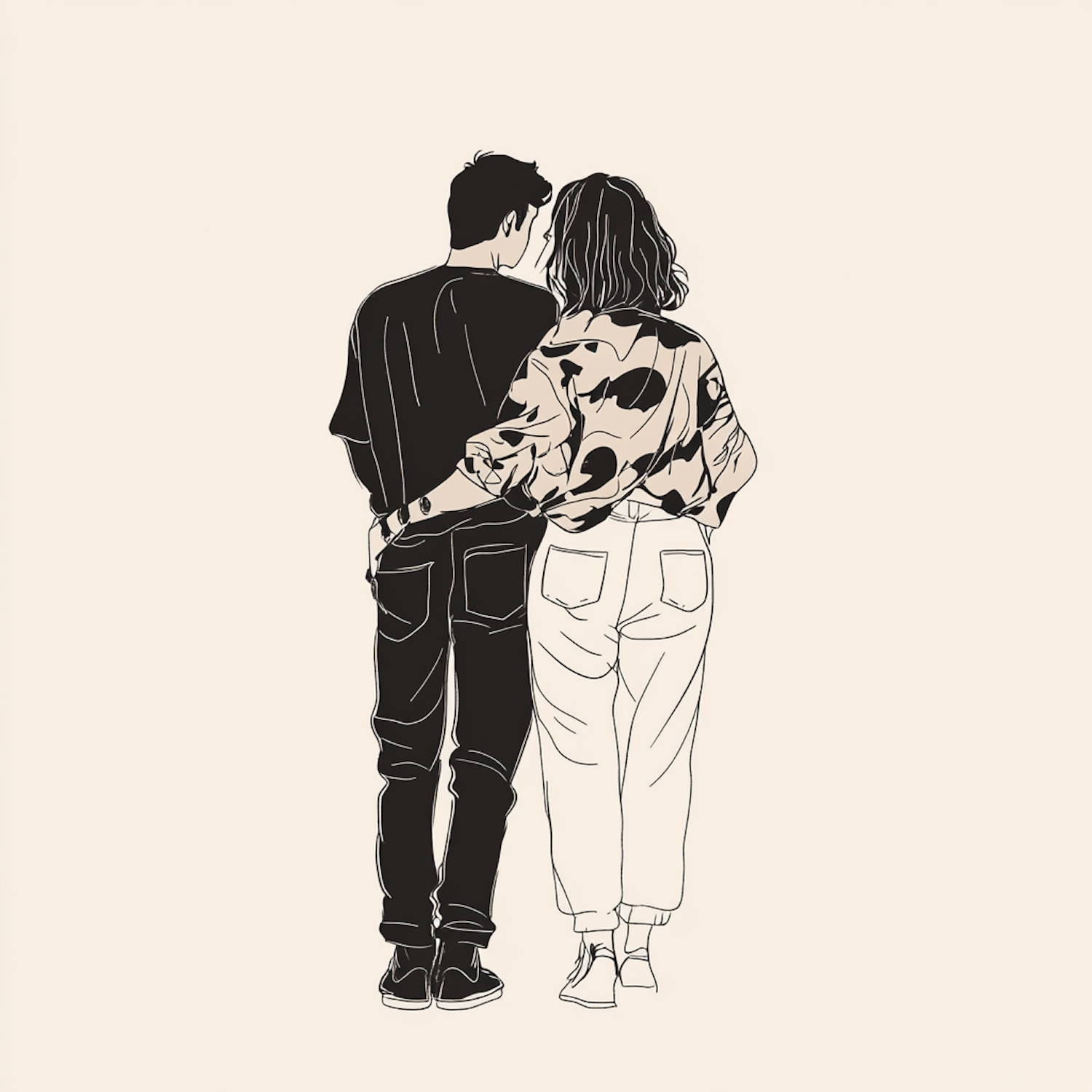 Minimalist illustration of a couple walking together, showcasing a simple line-drawn style with a focus on intimacy and connection.