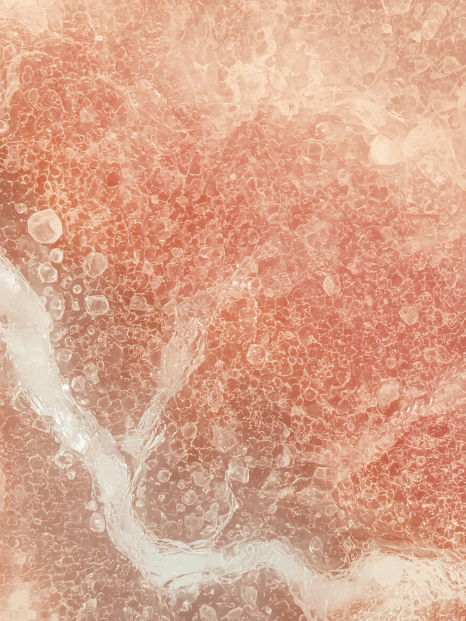 Abstract close-up of a pink and white crystalline texture with intricate patterns and light reflections, creating a dynamic and organic feel.
