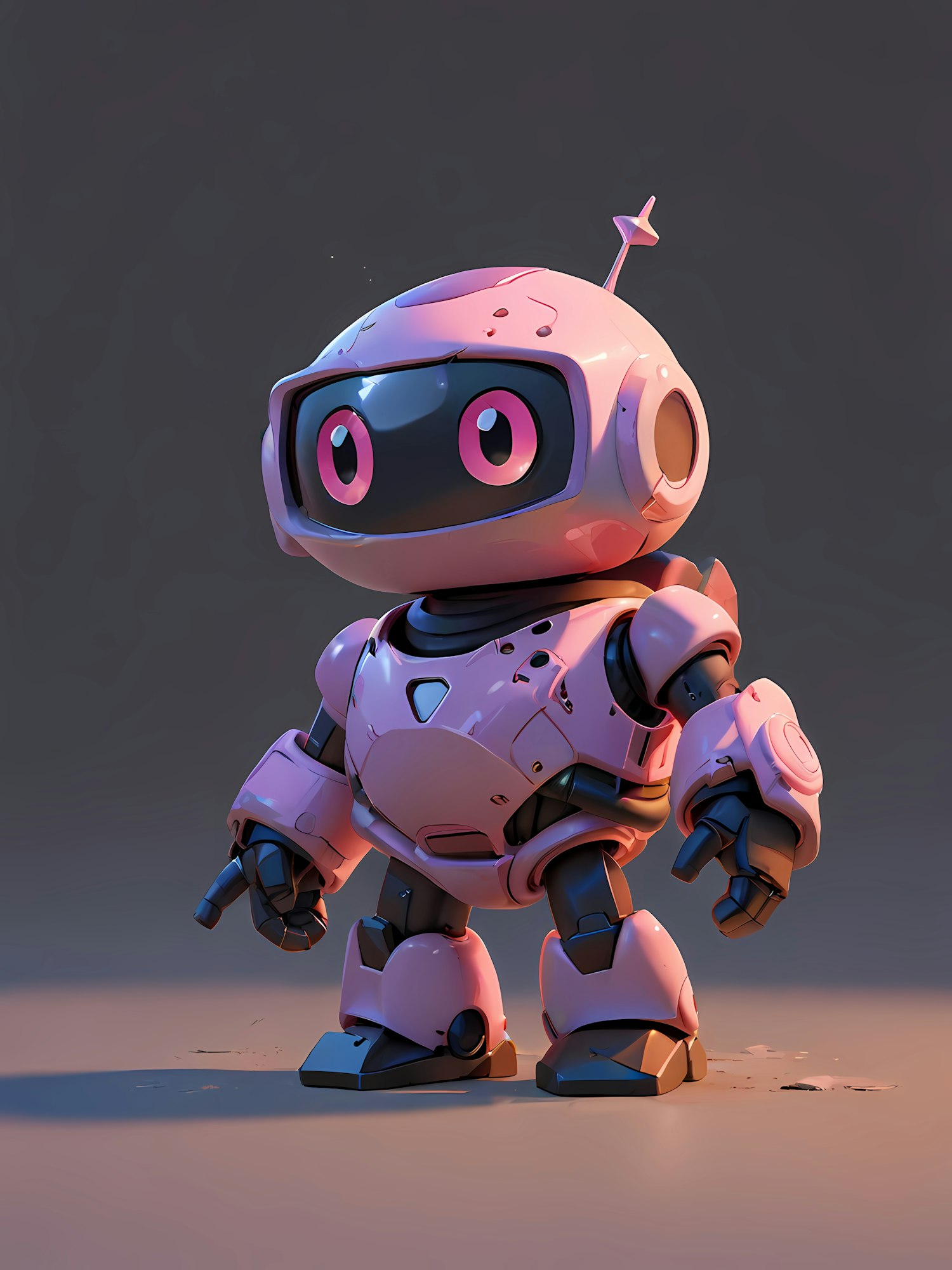 Adorable pink robot with expressive eyes and a futuristic design, perfect for sci-fi or tech enthusiasts. A charming 3D creation!