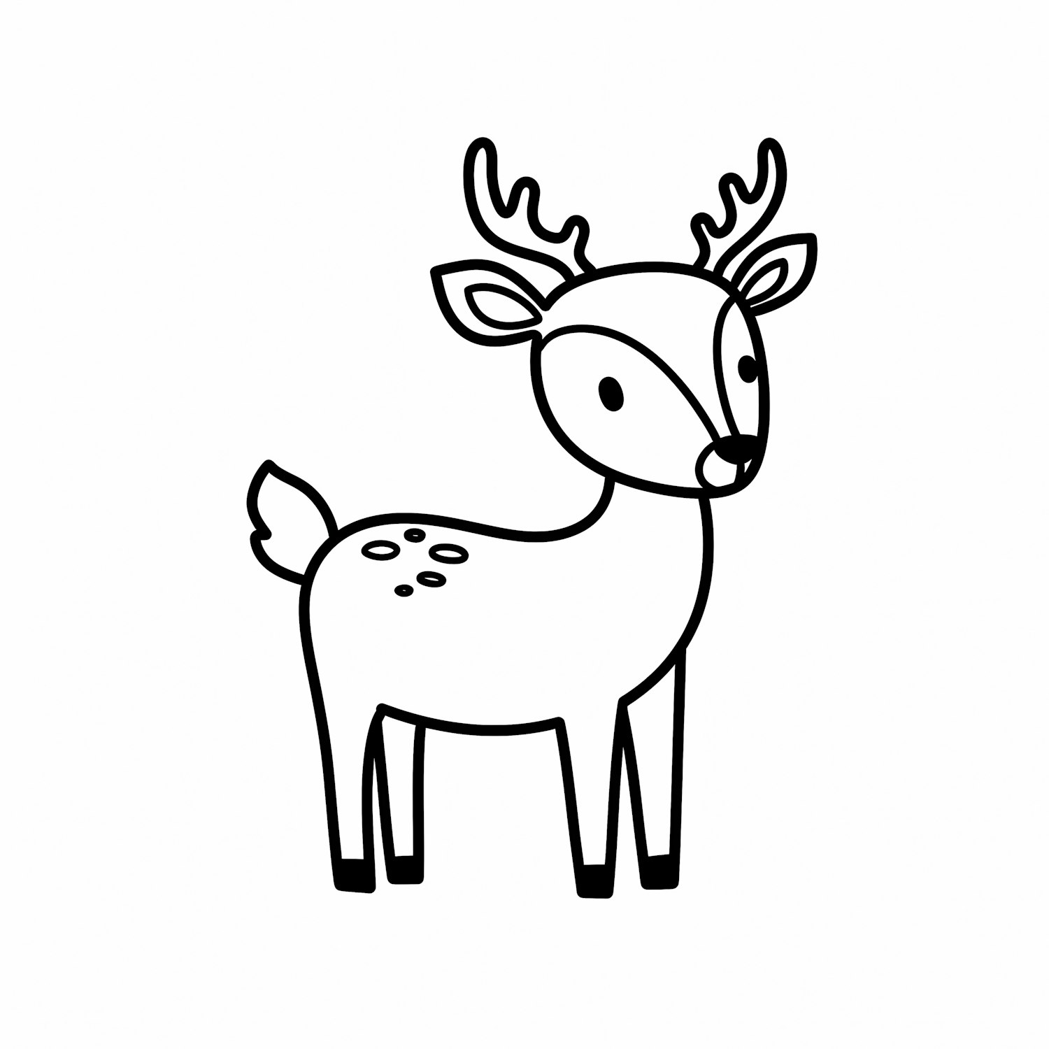 A cute black-and-white line art drawing of a deer with antlers and spots, perfect for coloring or design projects.