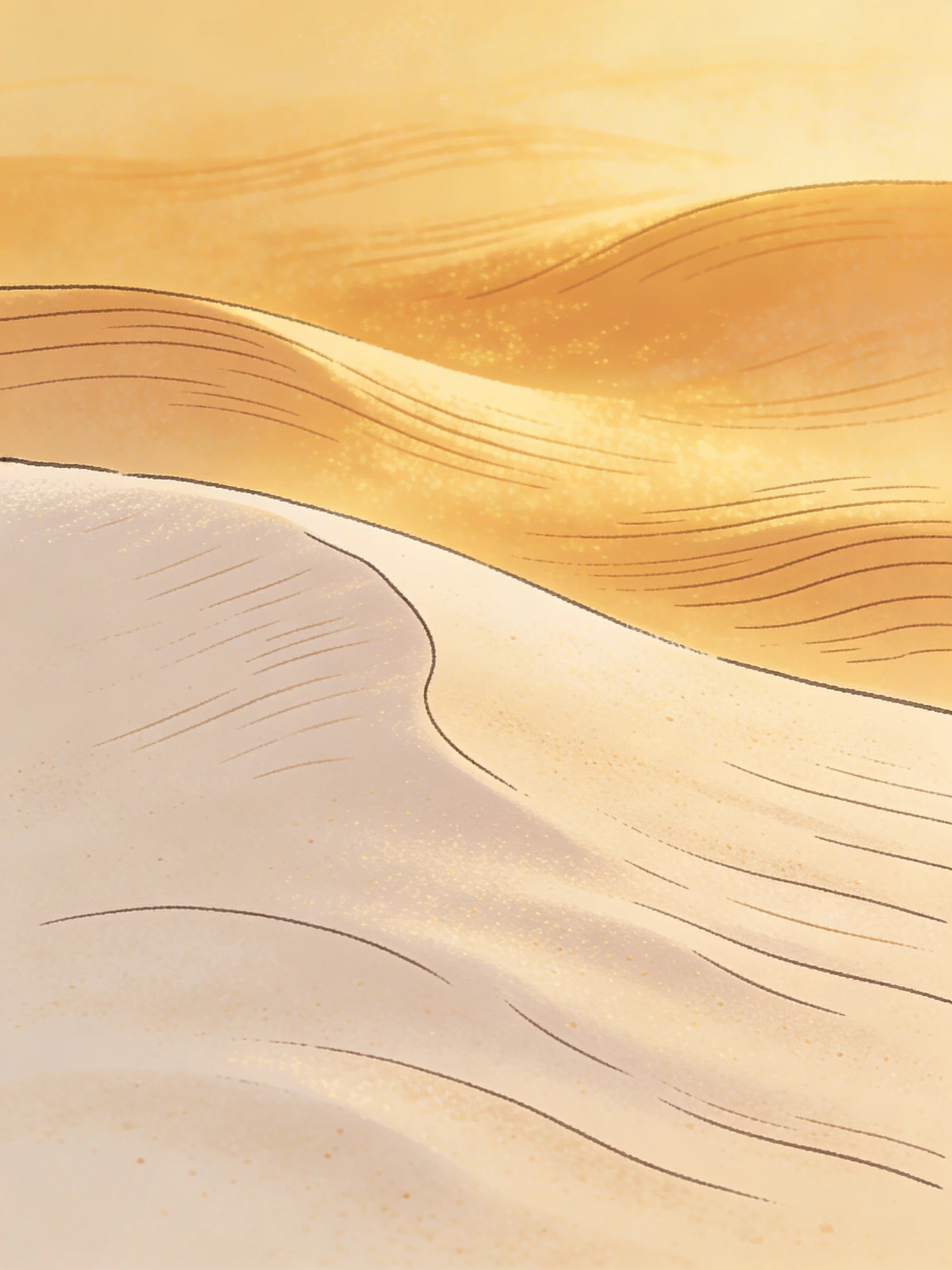 A tranquil illustration of golden sand dunes under soft light, showcasing the serene beauty of a desert landscape.