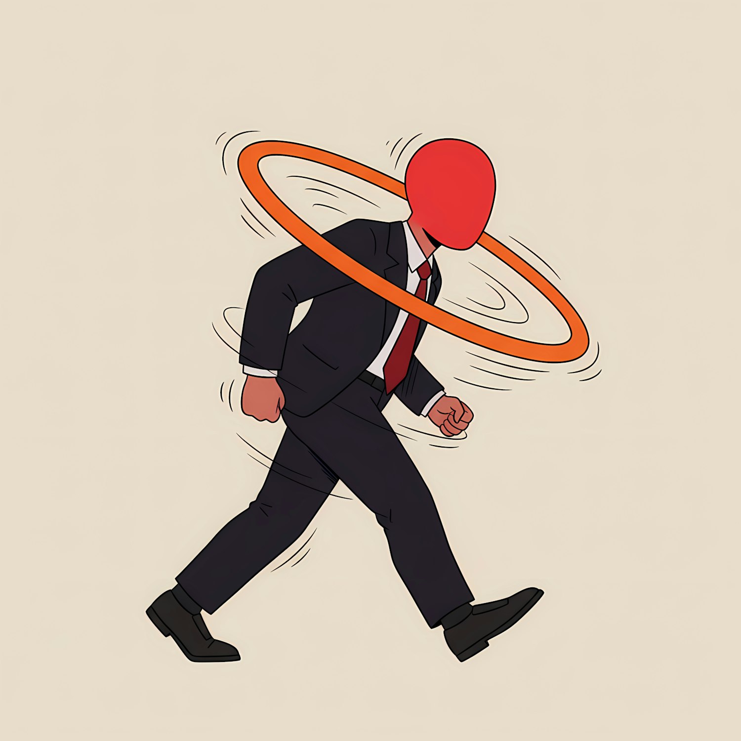 A faceless figure in a suit strides forward, encircled by an orange ring, in this dynamic and conceptual illustration.