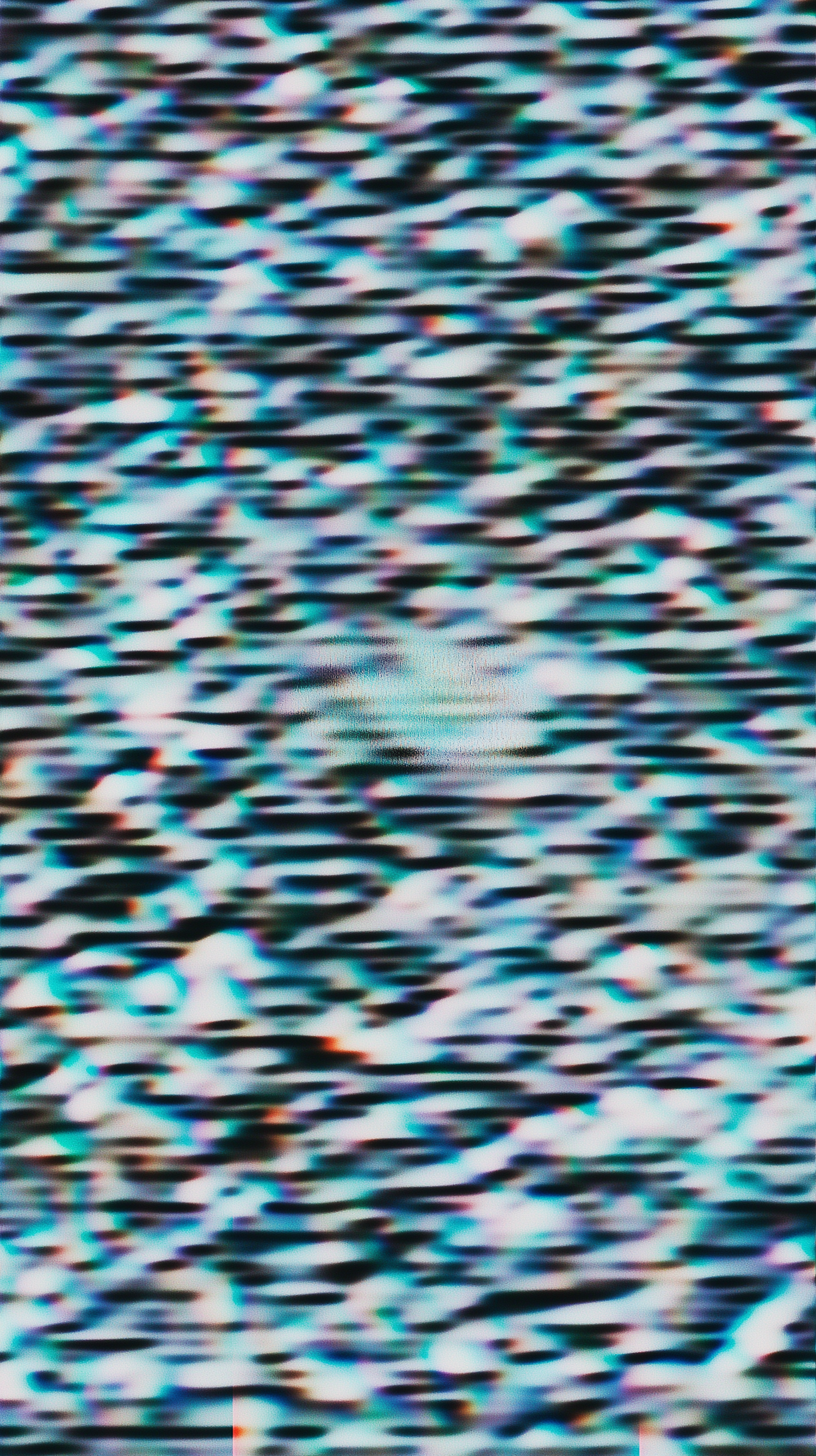 Abstract glitch art with vibrant horizontal lines and static noise, evoking a retro TV screen or digital interference aesthetic.